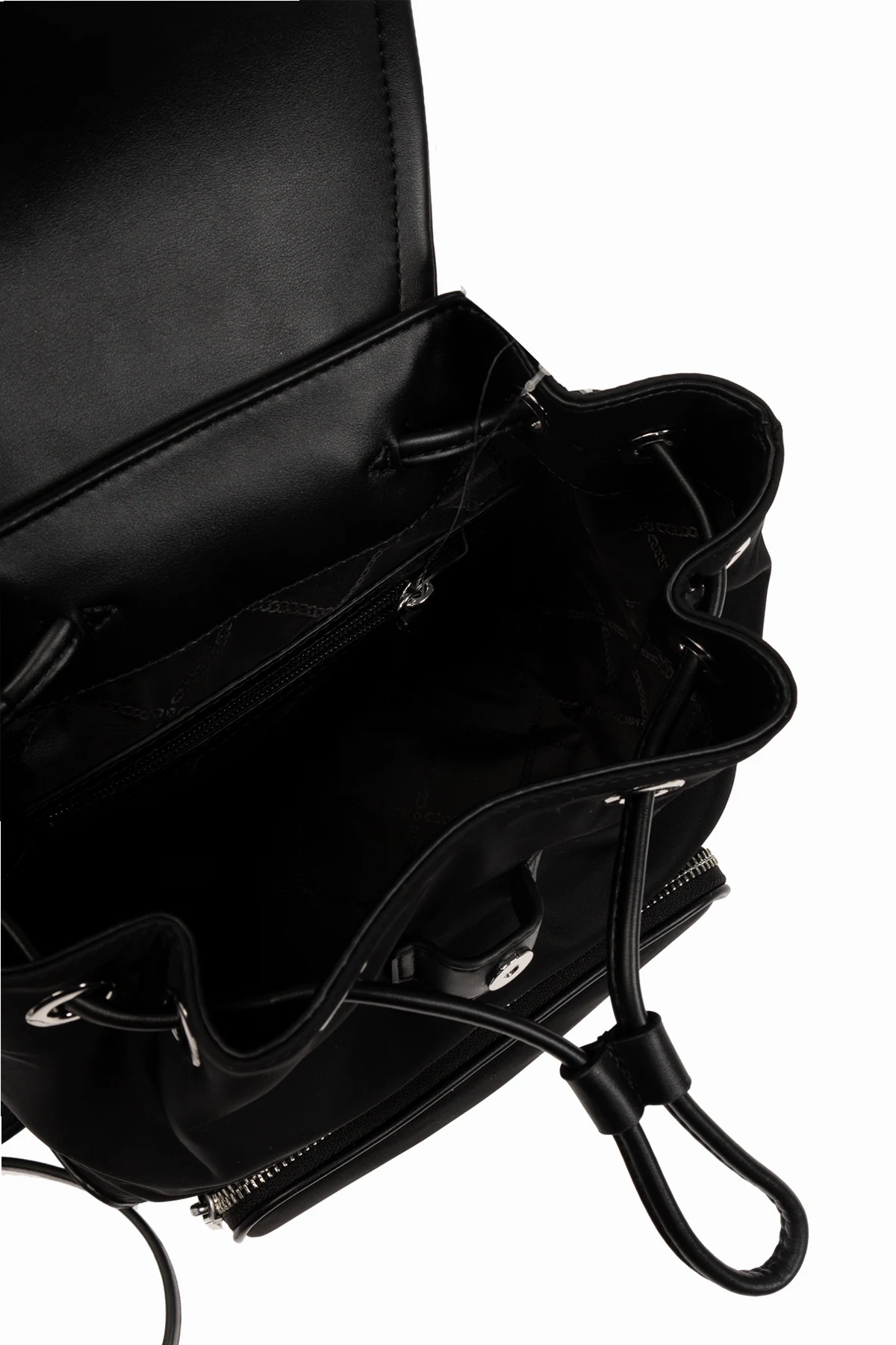 Wykonany z połączenia technicznej tkaniny oraz imitacji skóry , plecak 'Cara Small' zachwyca swoją trwałością i wyrafinowaną teksturą. Dominujący kolor czarny, w połączeniu z metalowymi akcentami w kolorze srebrnym , nadaje mu uniwersalność i pozwala na łatwą stylizację z różnorodnymi outfitami. Klasyczna, prostokątna forma z zaokrąglonymi krawędziami dodaje mu nowoczesności, a wyraźnie widoczne, srebrne logo projektanta na przedniej klapie stanowi znak rozpoznawczy marki.