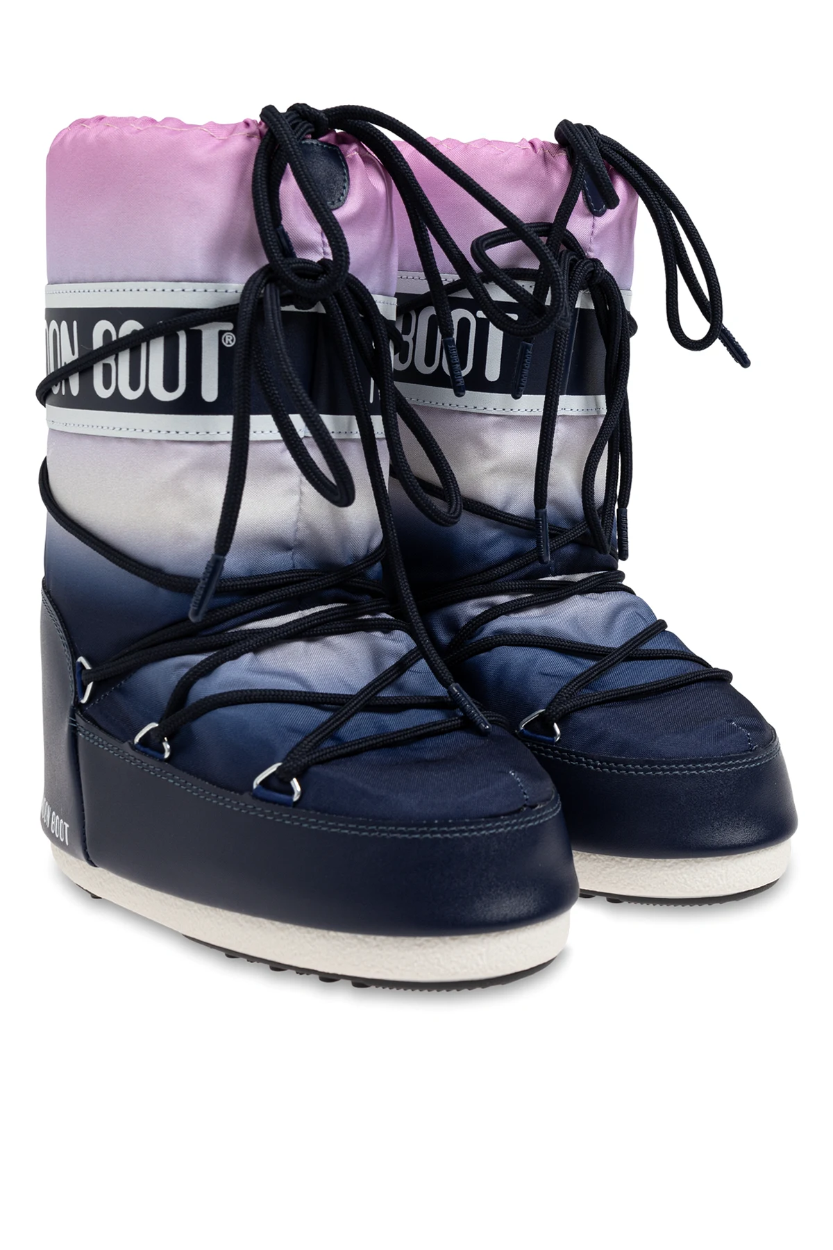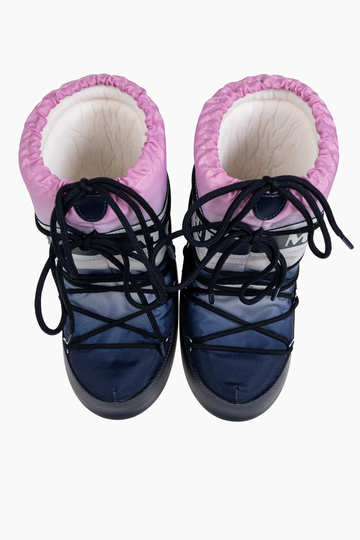 Przedstawiamy śniegowce „Icon Low Moonrise” z kolekcji Moon Boot Kids, które łączą w sobie niepowtarzalny design z doskonałą funkcjonalnością. Te fioletowo-granatowe buty, z subtelnym gradientem do jasnoróżowego i białego, emanują elegancją oraz nowoczesnym stylem.