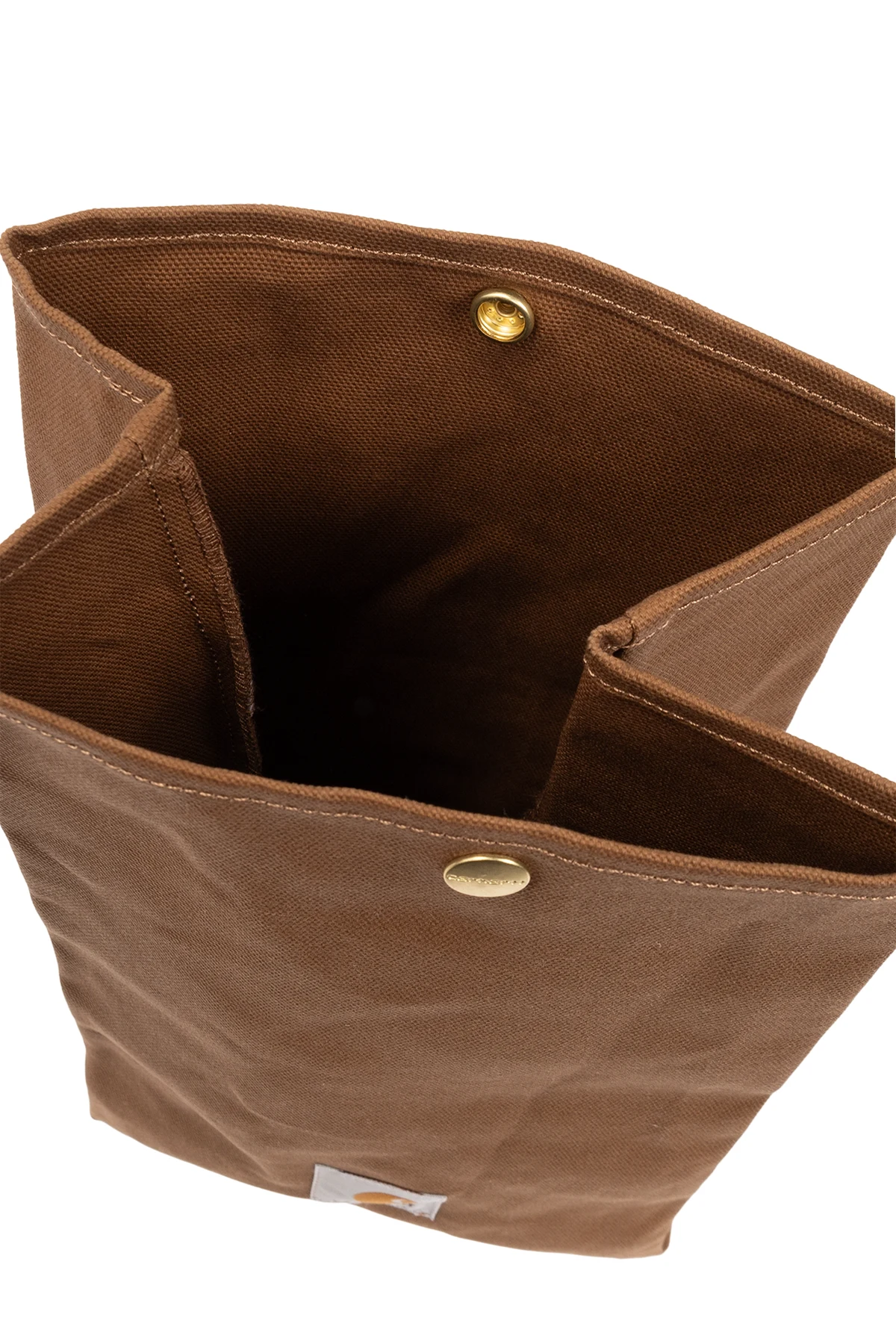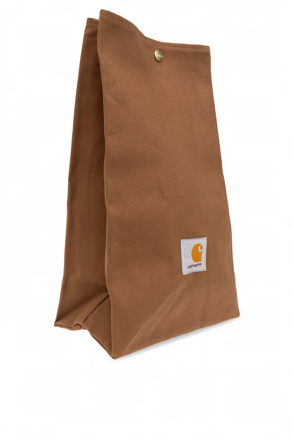 Detal, jakim jest naszywka z logo Carhartt WIP , umieszczona na przedniej stronie, stanowi o unikatowości tego projektu, łącząc w sobie białe tło z pomarańczowo-czarnym znakiem graficznym. Złoty zatrzask nie tylko zabezpiecza zawartość, ale również dodaje elegancji. Wnętrze torby, utrzymane w tym samym kolorze, co zewnętrzna część, zachwyca swoją obszernością, pozwalając na swobodne przechowywanie posiłków.