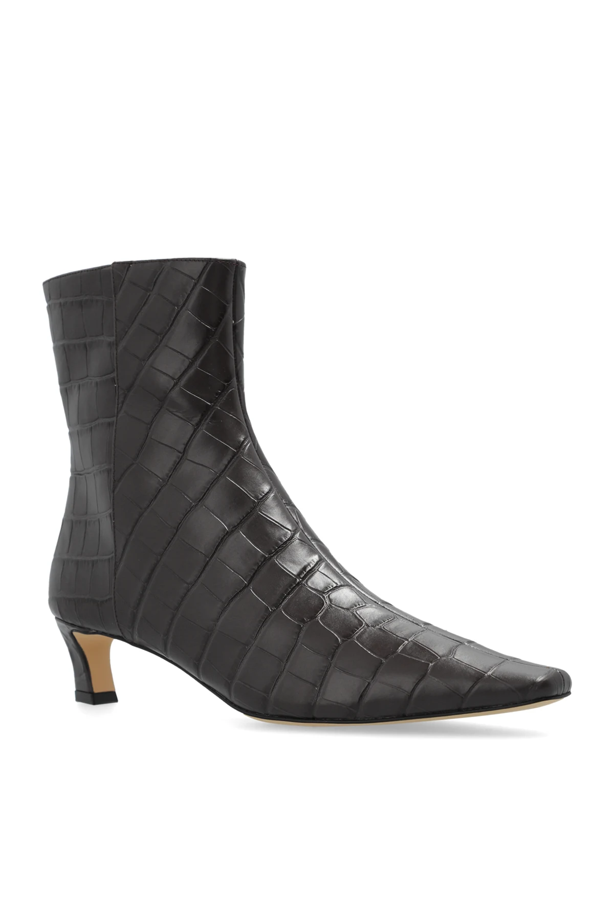 Wzór i Materiał: Wykonane z materiału imitującego skórę krokodyla, botki zachwycają luksusowym wyglądem. Wyraźny wzór krokodyla na całej powierzchni butów podkreśla ich wyjątkowość i elegancję.