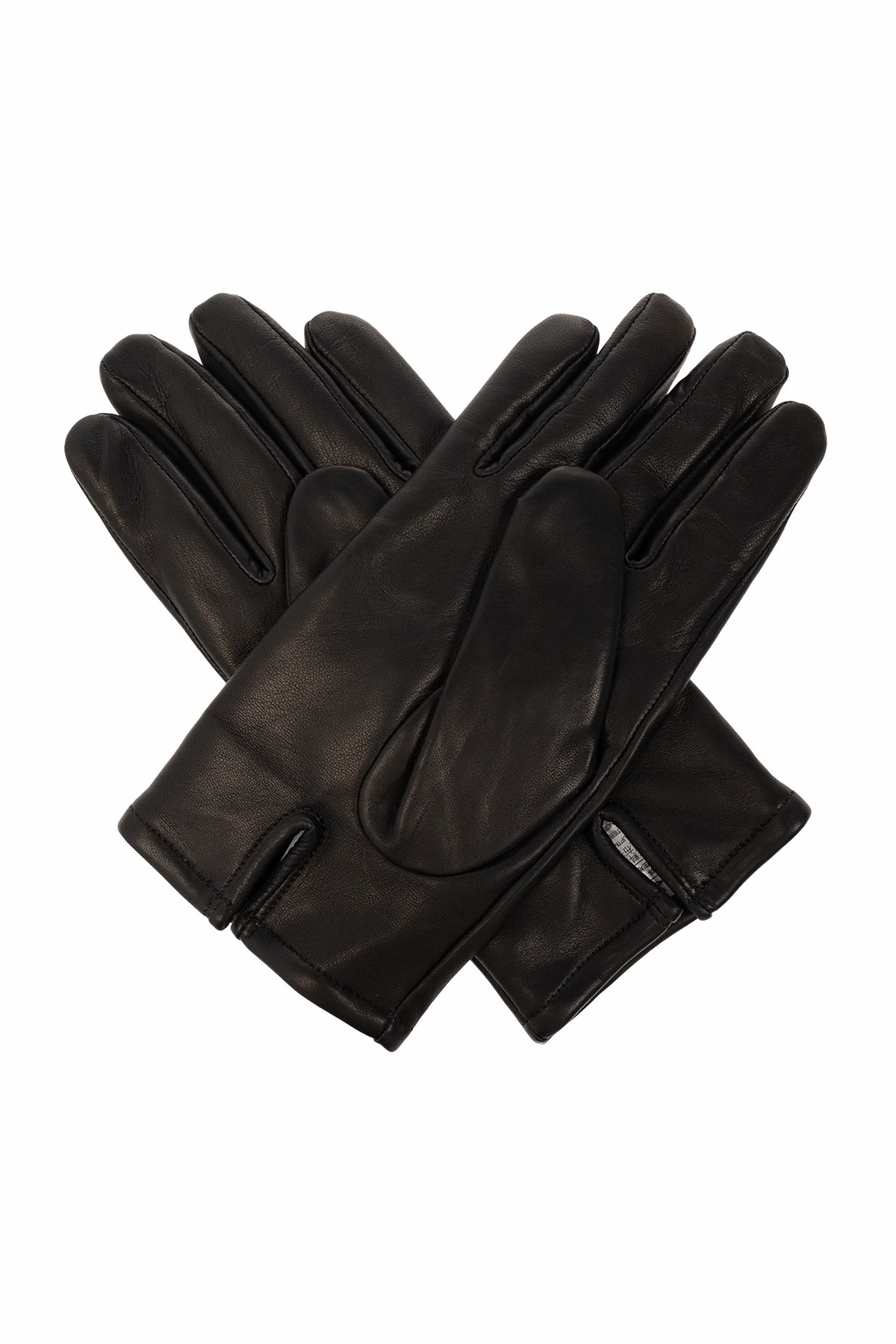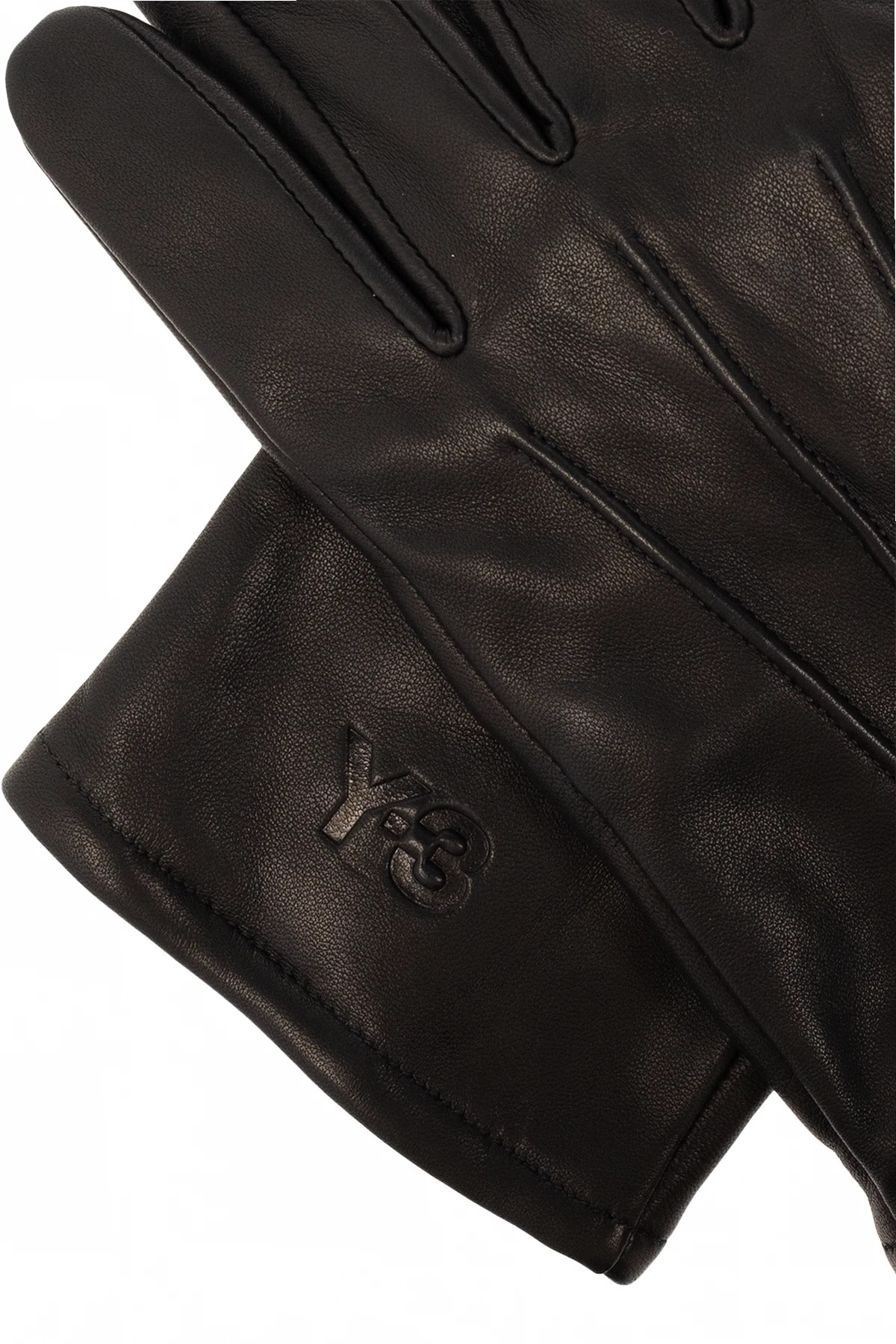 Czarne, skórzane rękawiczki Y-3 Yohji Yamamoto. Ozdobione wytłoczonym logo.