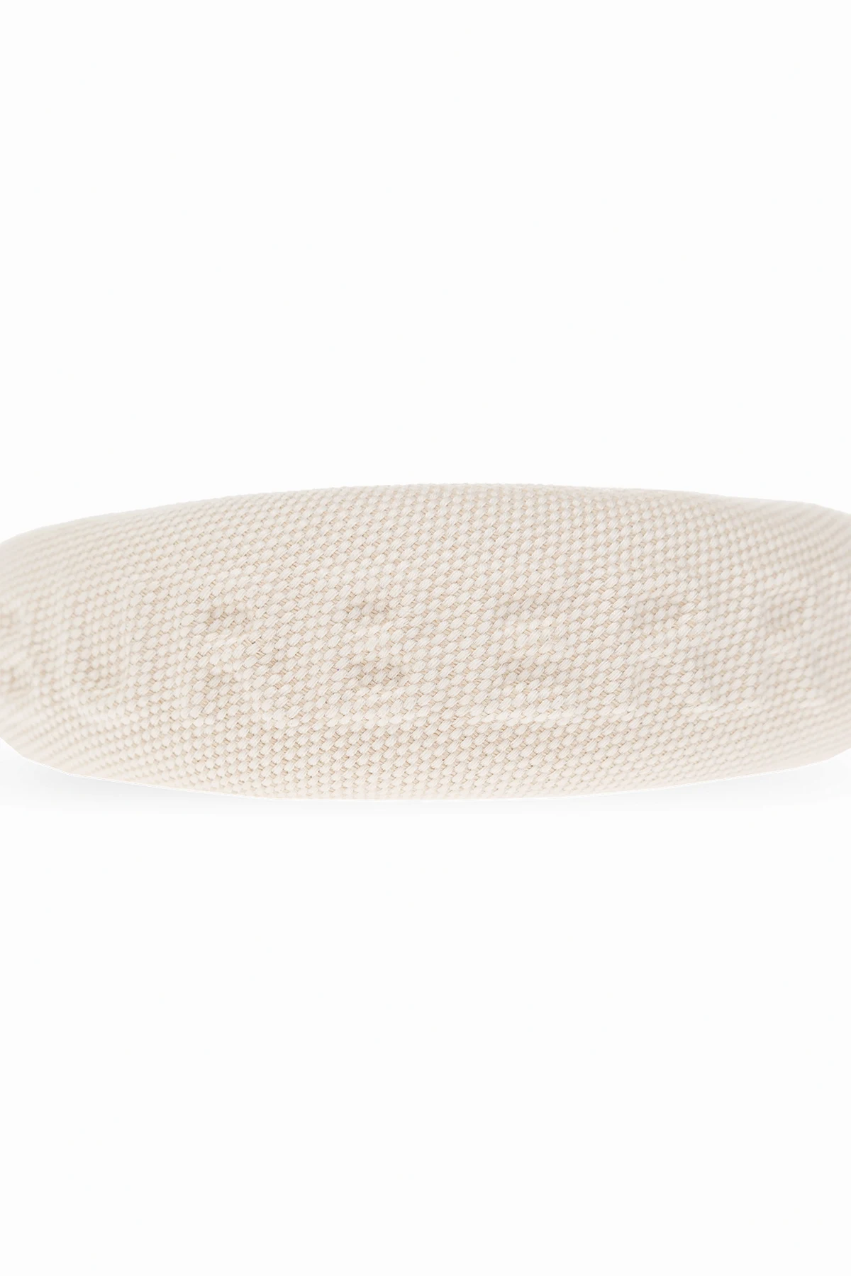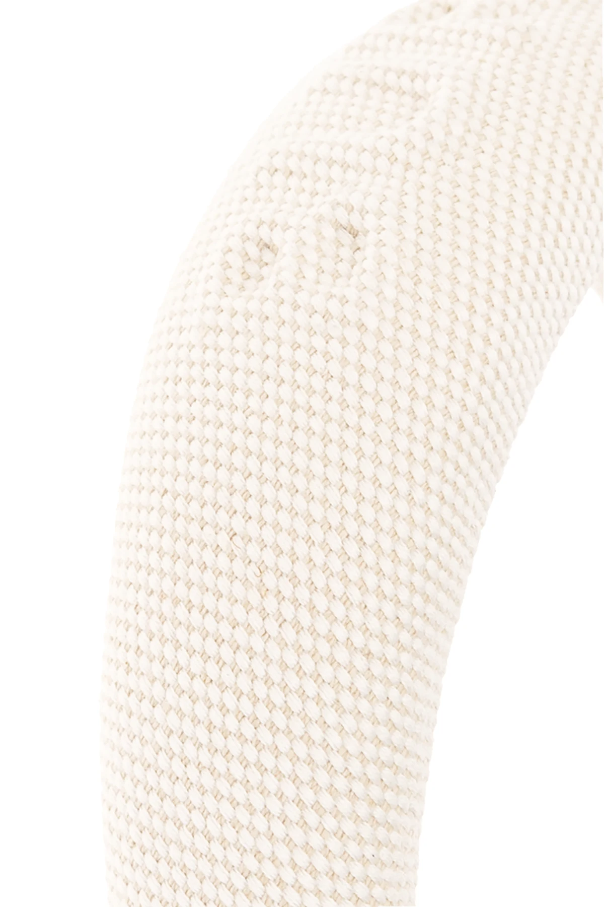 Kremowa opaska na głowę Burberry. Wykonana z bawełnianego płótna i wykończona brązową skórą cielęcą. Ozdobiona wypukłym logo.