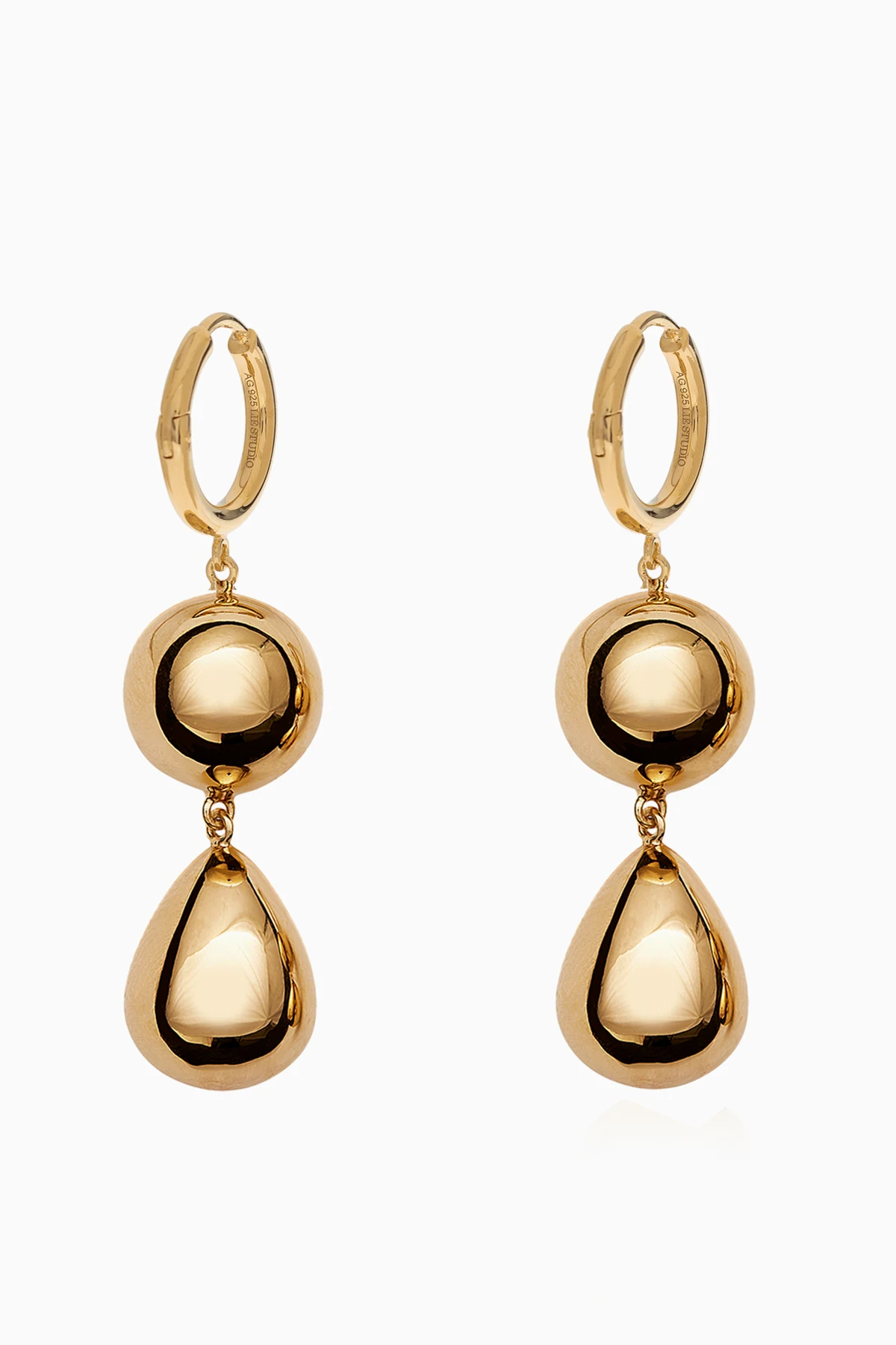 Przedstawiamy Państwu kolczyki The Cathrine z ekskluzywnej kolekcji LIÉ STUDIO. Te unikalne ozdoby wykonane ze srebra 925, pokryte złotą barwą, emanują elegancją i luksusem.