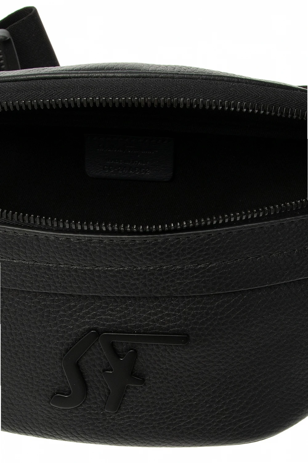 Czarna torba na pas, model ‘Firenze’ Salvatore Ferragamo. Wykonana z cielęcej skóry. Zamykana na dwubiegunowy zamek. Z przodu metalowe logo. Regulowany, materiałowy pas. Wewnątrz komora. Metalowe elementy w kolorze czarnym.