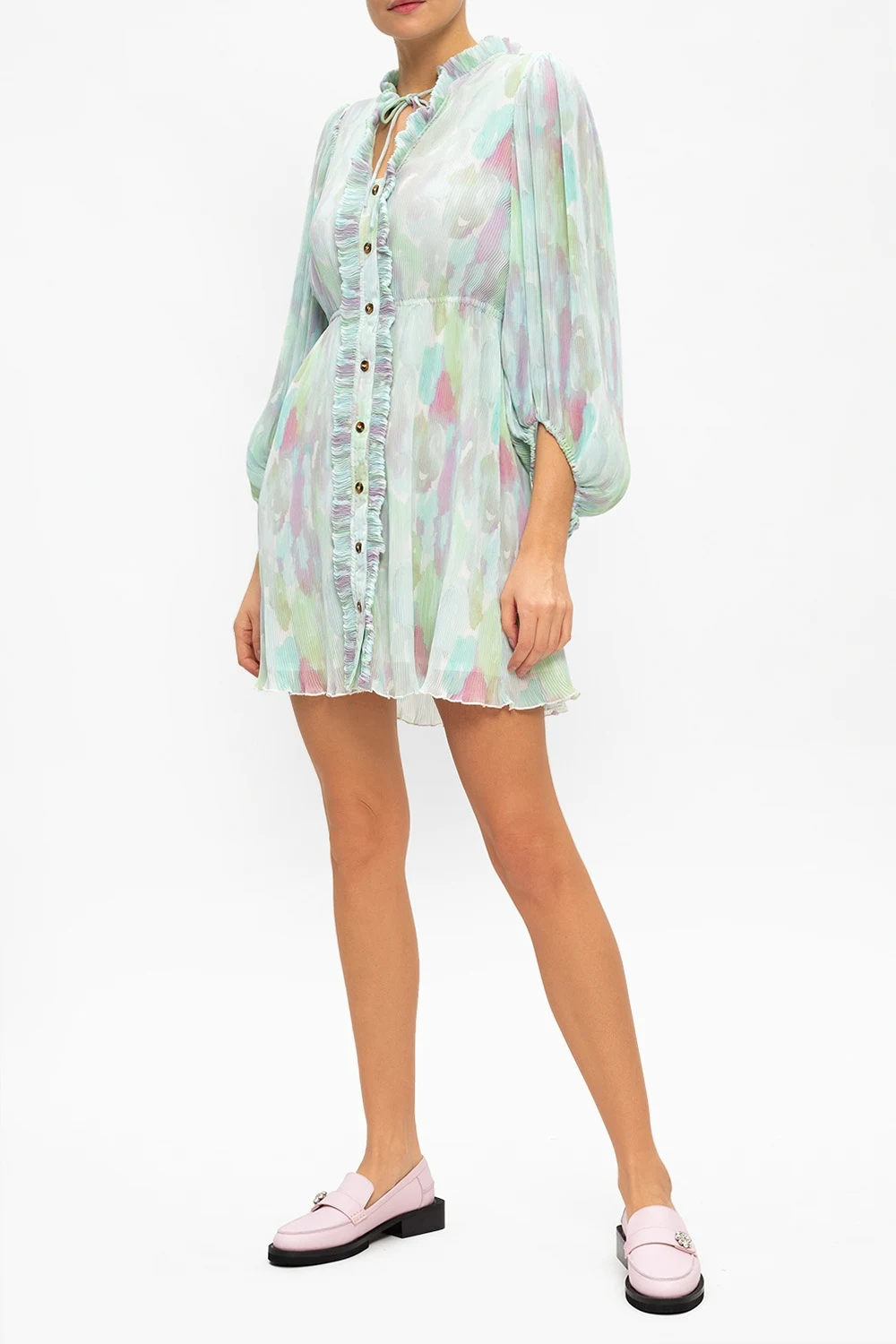 Jasnoróżowe mokasyny Ganni. Wykonane ze skóry. Ozdobione aplikacją wysadzaną szklanymi elementami. Czarna, gumowa podeszwa.