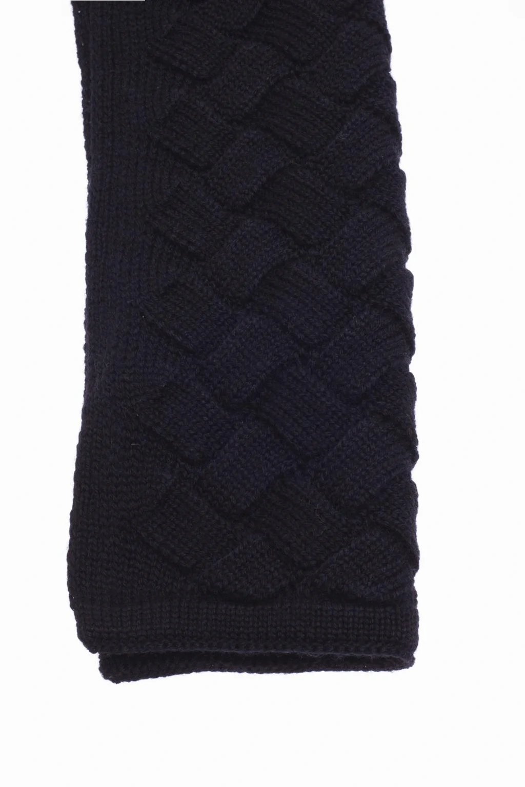 Czarny, wełniany szal Bottega Veneta. Tkany wzór 'Intrecciato'.