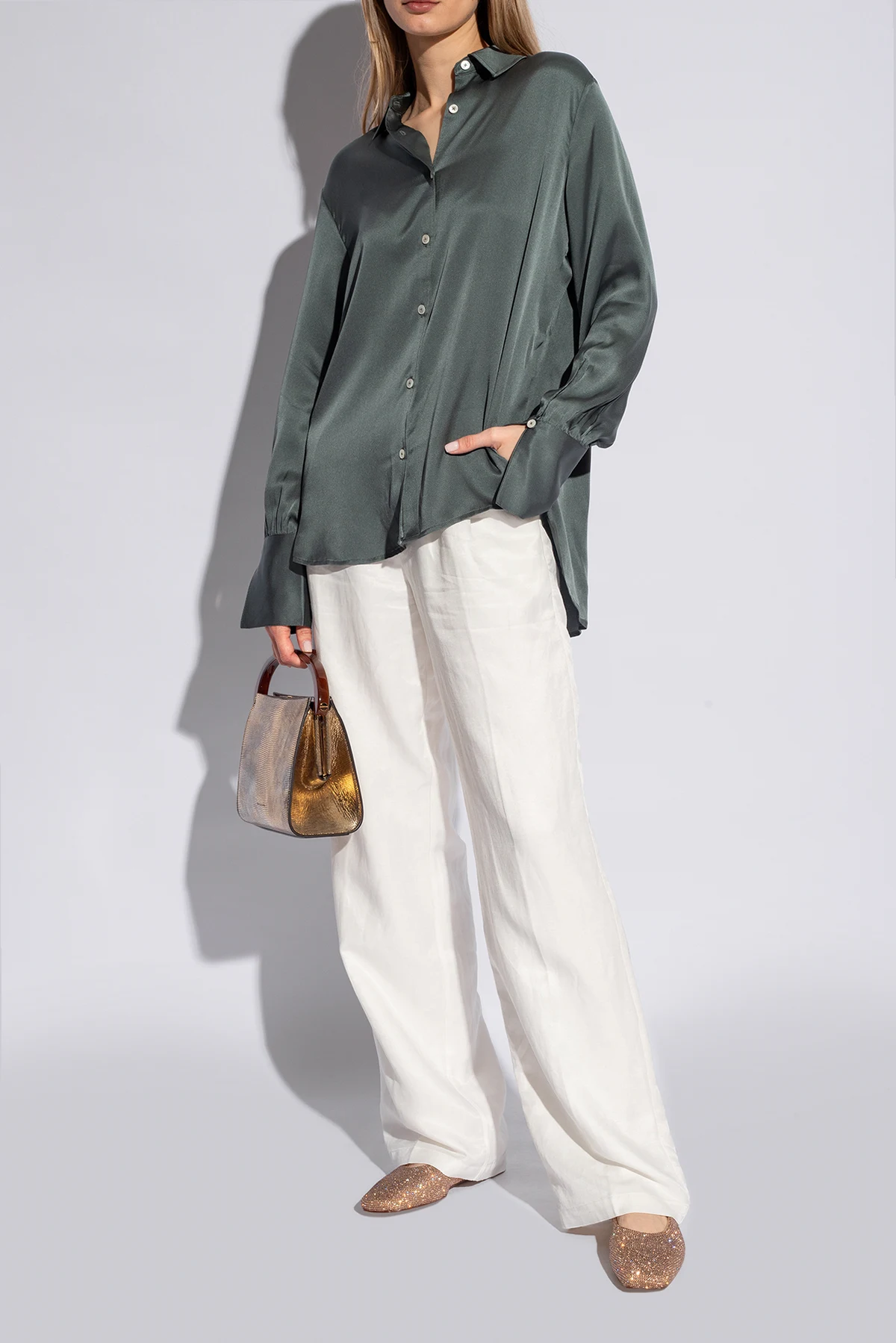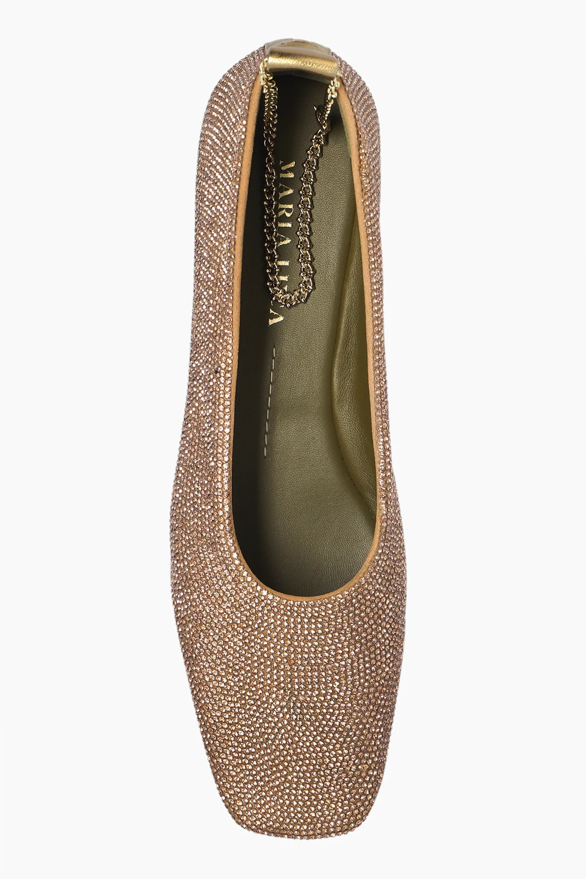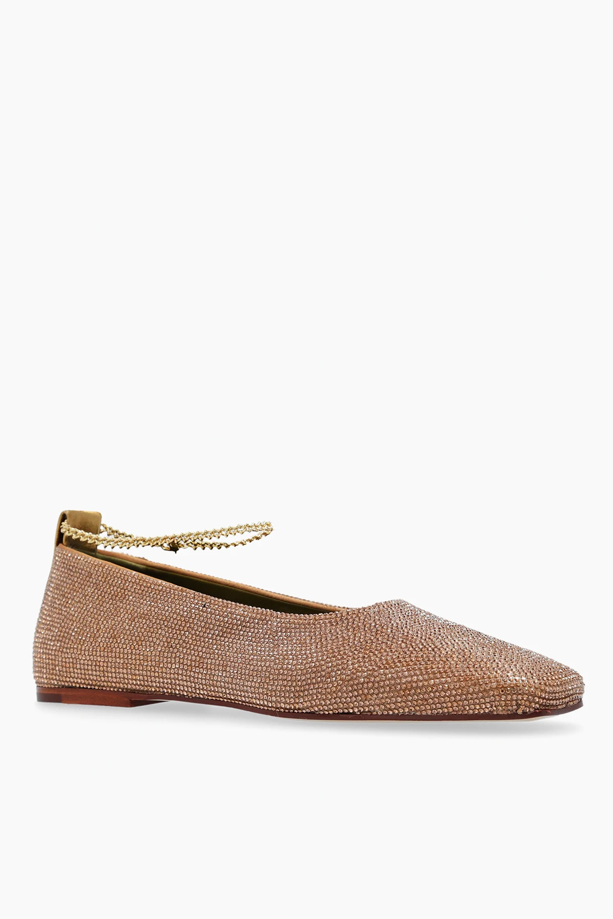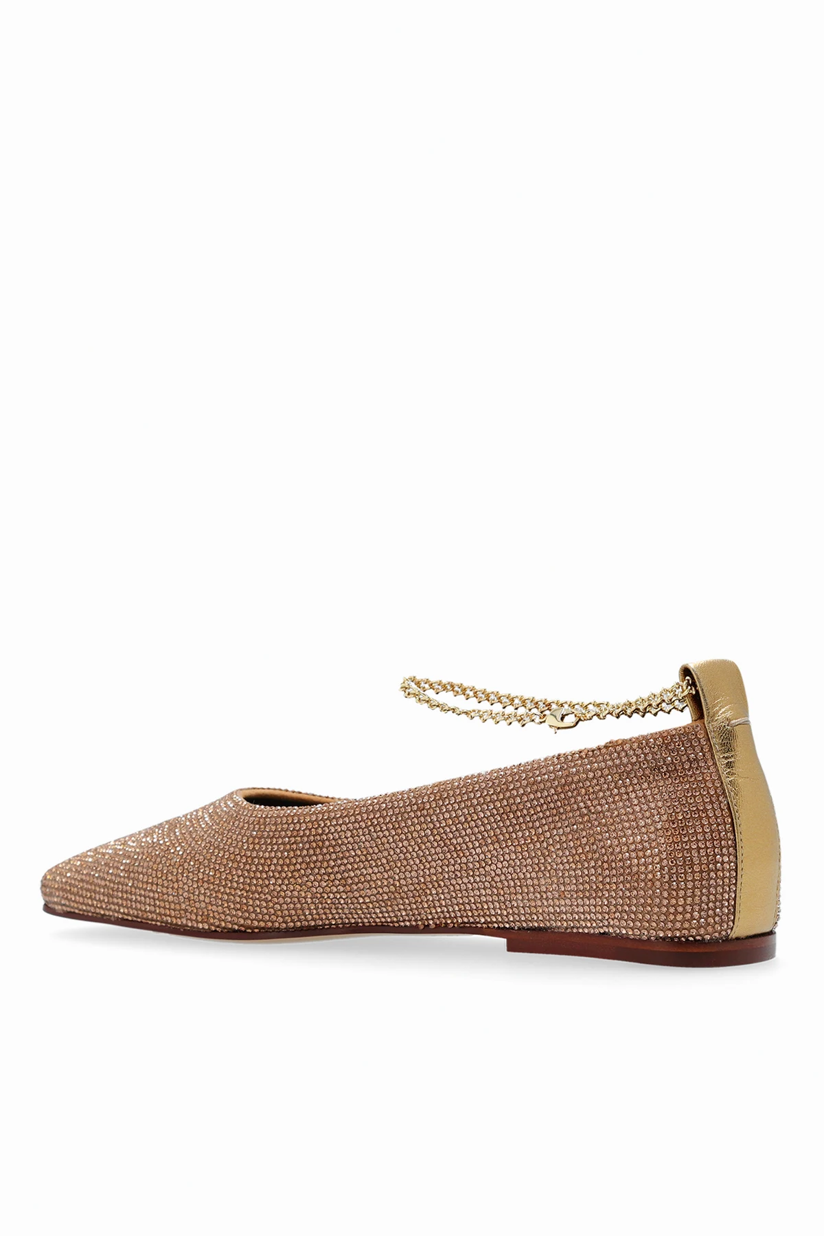 Subtelny złoty akcent z tyłu buta, pełniący funkcję praktyczną i dekoracyjną, dodaje całości niepowtarzalnego charakteru. Uzupełnieniem jest wewnętrzna wyściółka w odcieniu złota, co tworzy harmonijną całość z zewnętrzną warstwą. Niezwykłość tych balerin podkreśla złoty napis na wewnętrznej krawędzi, będący gwarancją autentyczności i wysokiej jakości wykonania.