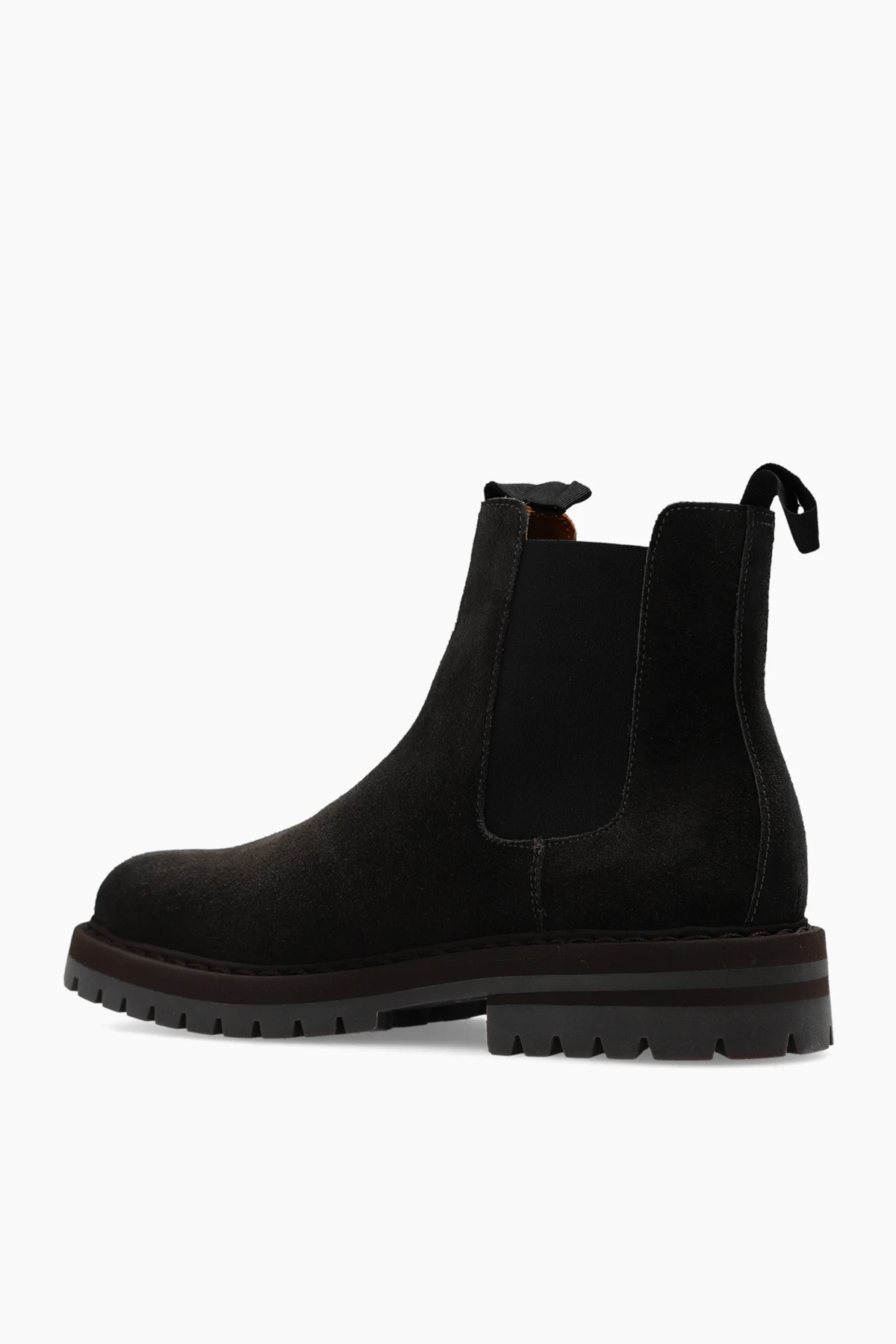 Czarne, wsuwane botki Common Projects. Wykonane z zamszu. Po bokach wszyta guma. Brązowo-szara, gumowa podeszwa.