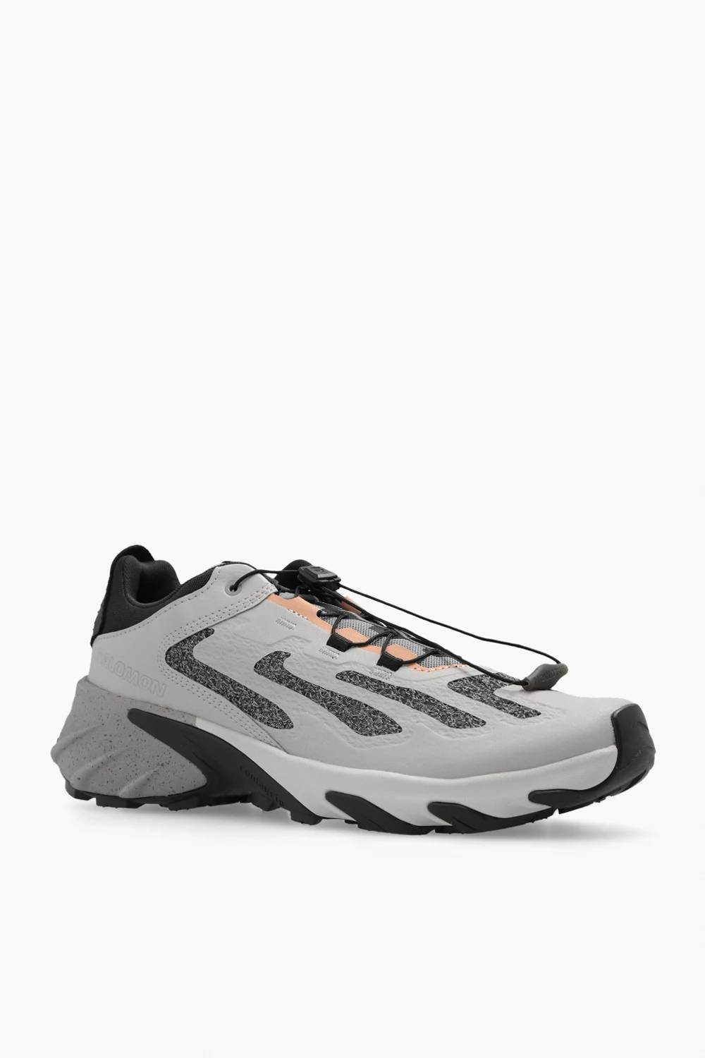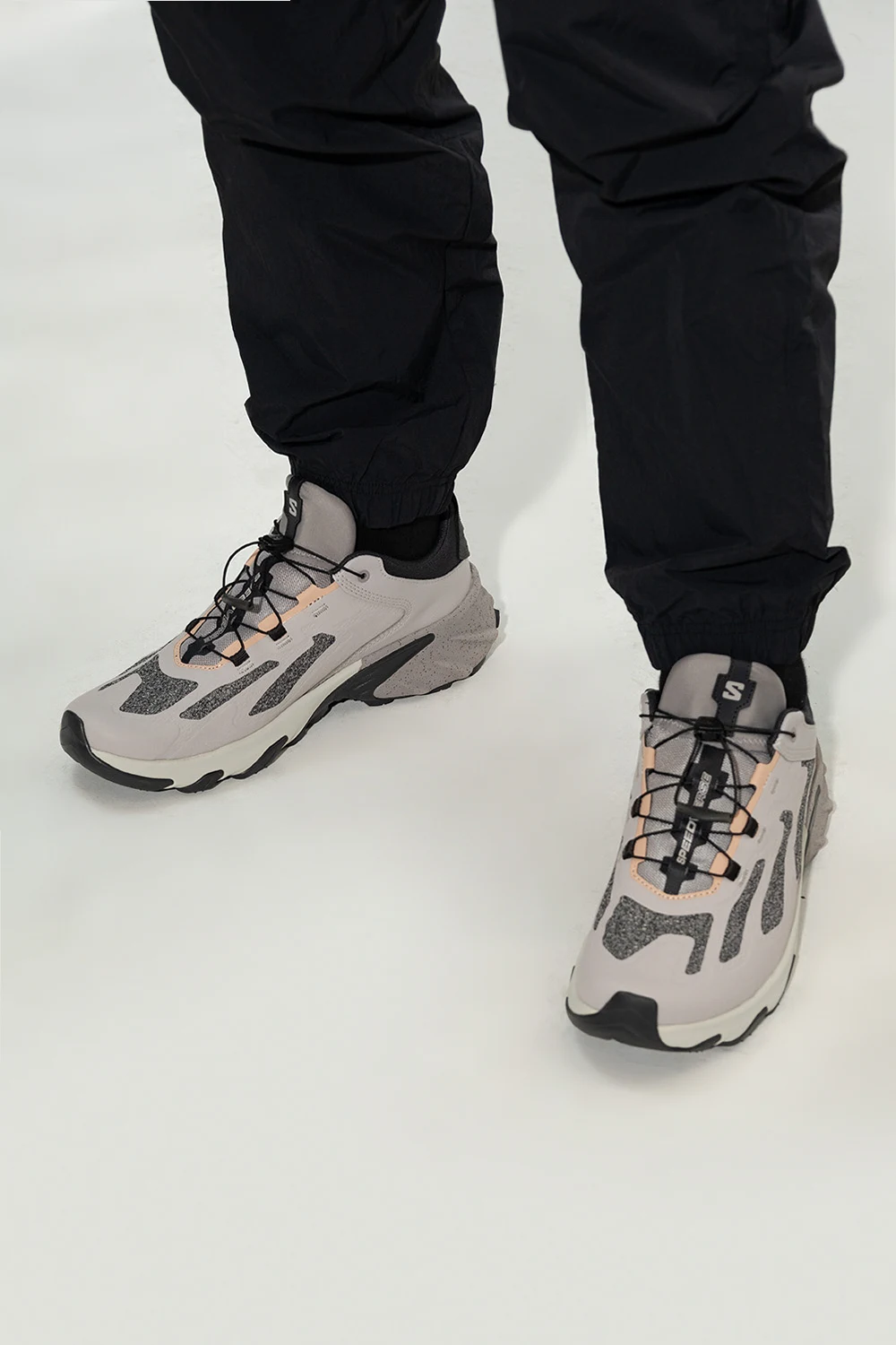 Fioletowo-szare buty sportowe, model ‘SPPEDVERSE PRG’ Salomon. Wykonane z materiału i tworzywa sztucznego. Ozdobione ażurowymi wycięciami z przewiewnego materiału. Szaro-fioletowa, gumowa podeszwa.