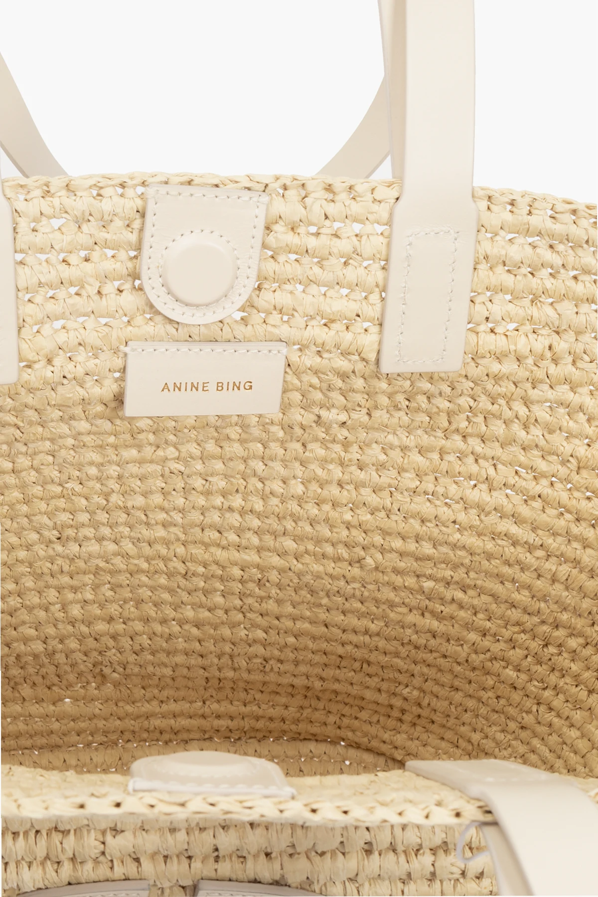 Prezentujemy Państwu wykwintną torbę typu "shopper" od renomowanego projektanta Anine Bing , która łączy w sobie ponadczasową elegancję i praktyczność. Wykonana z wysokiej jakości materiału przypominającego plecionkę, torba zachwyca swoją teksturą i subtelnym beżem, który dodaje jej uniwersalnego charakteru.
