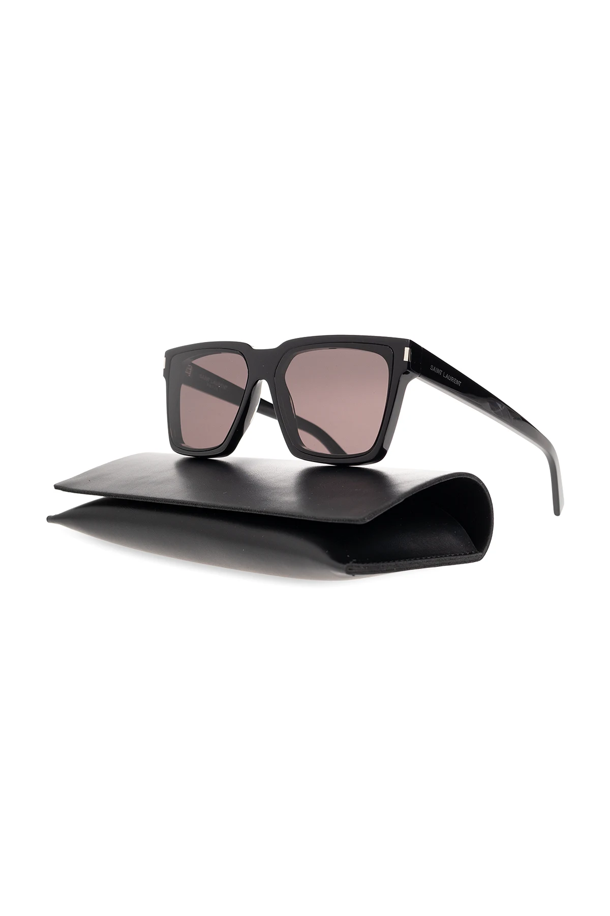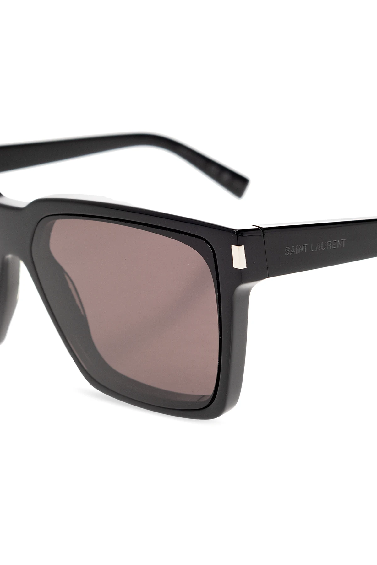 Czarne okulary przeciwsłoneczne, model ‘SL 610’ Saint Laurent. Kwadratowe oprawki wykonane z acetatu pochodzącego z recyklingu. Zauszniki ozdobione logo. Metalowe detale w kolorze srebrnym. Czarne szkła wykonane z bio nylonu ze 100% ochroną przed promieniowaniem UVA/UVB. Dołączone etui.