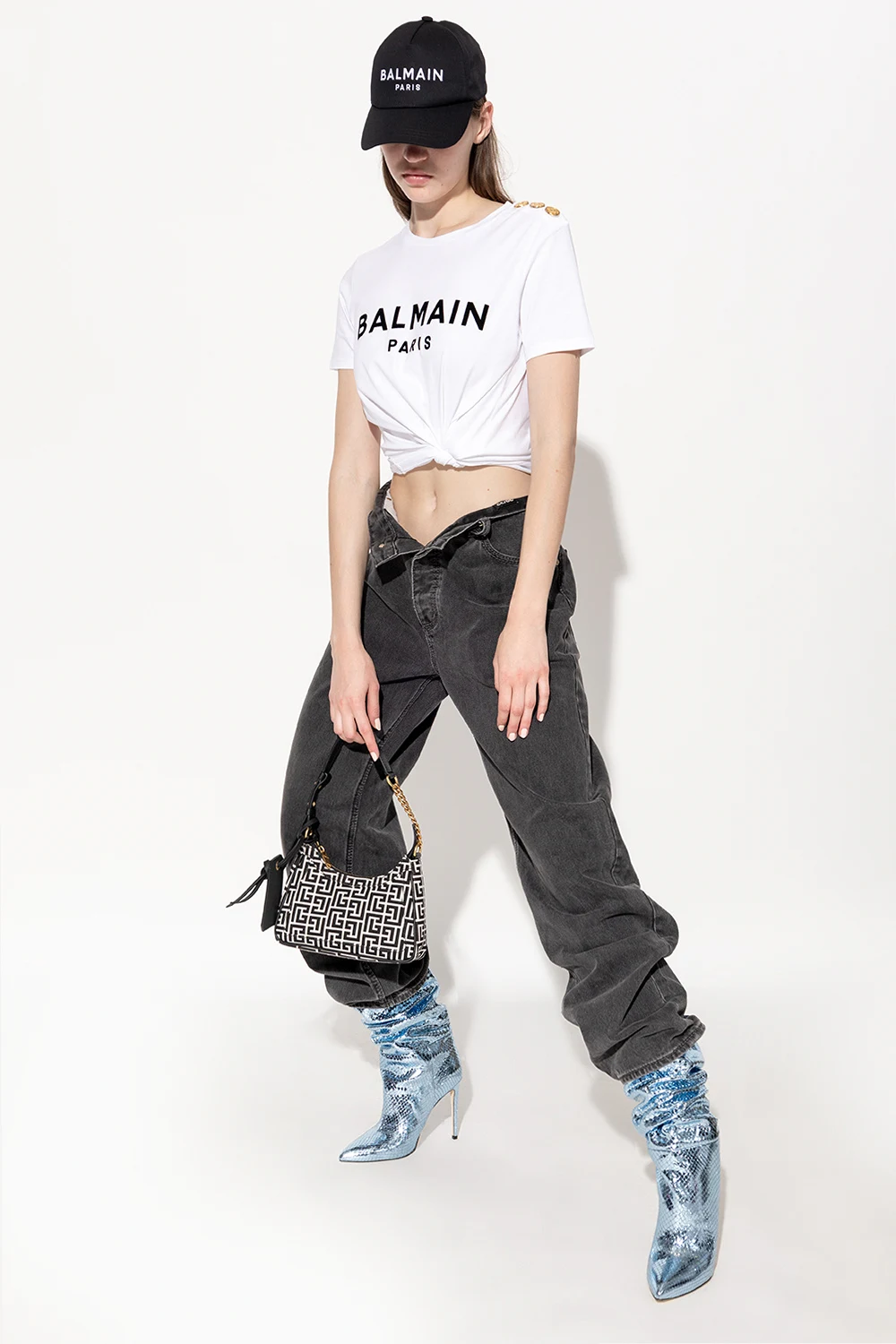 Niebieskie, wsuwane kozaki na obcasie Paris Texas. Wykonane ze skóry o metalicznym połysku i specjalnej fakturze imitującej skórę węża. Dekoracyjnie marszczona cholewka. Zwężany nosek. Kremowa, skórzana podeszwa.