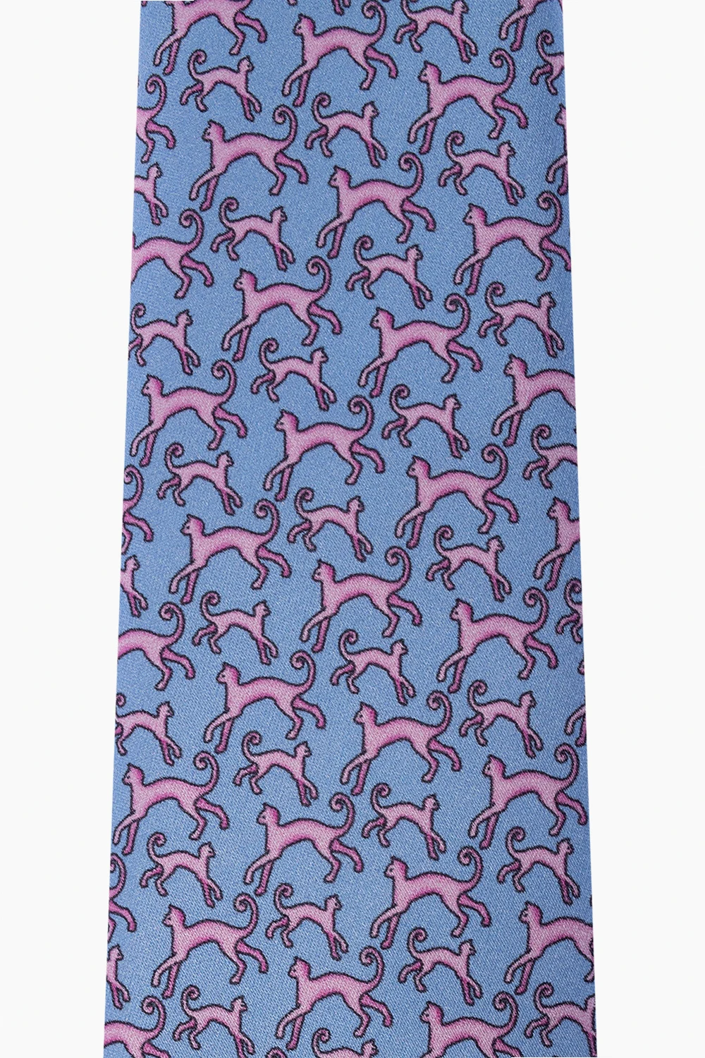Jasnofioletowo-różowy krawat Lanvin. Wykonany z jedwabiu. Ozdobiony wzorem z motywem zwierzęcym.