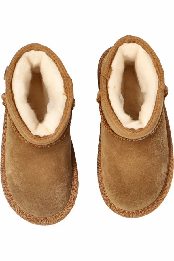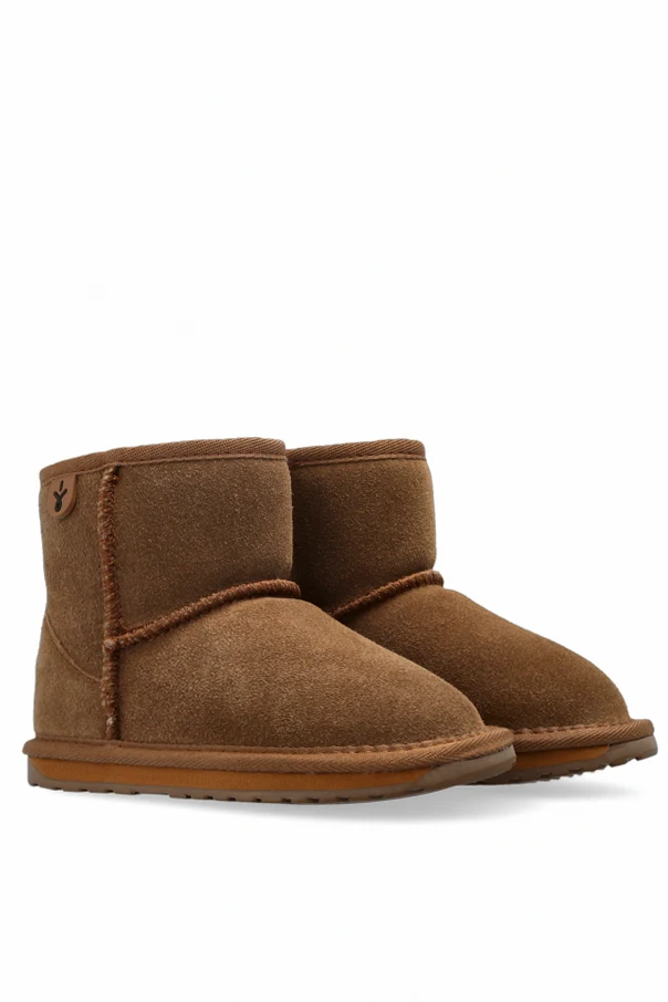 Śniegowce Wallaby Mini to kwintesencja nowoczesnej elegancji w wydaniu dziecięcym. Minimalistyczna sylwetka z niską cholewką oraz gładka, jednolita linia pozbawiona zdobień podkreśla wyszukany styl. Kolor brązowy doskonale harmonizuje z ciepłem zamszu, z którego wykonano zewnętrzną warstwę, gwarantując nie tylko wyrazistą estetykę, ale i trwałość. Wnętrze śniegowców wypełnia miękkie, białe futerko z wełny, zapewniając wyjątkowe uczucie komfortu i ochronę przed chłodem. Płaska podeszwa z gumy zwiększa stabilność, a subtelne logo i naszywka EMU Australia stanowią gustowny akcent wyróżniający model.