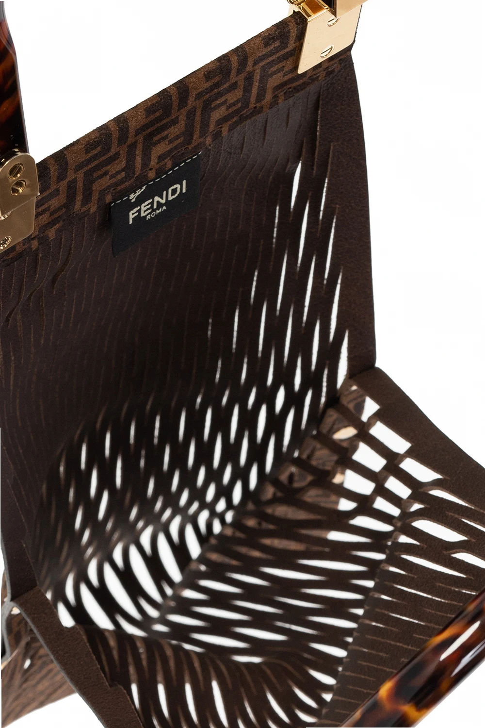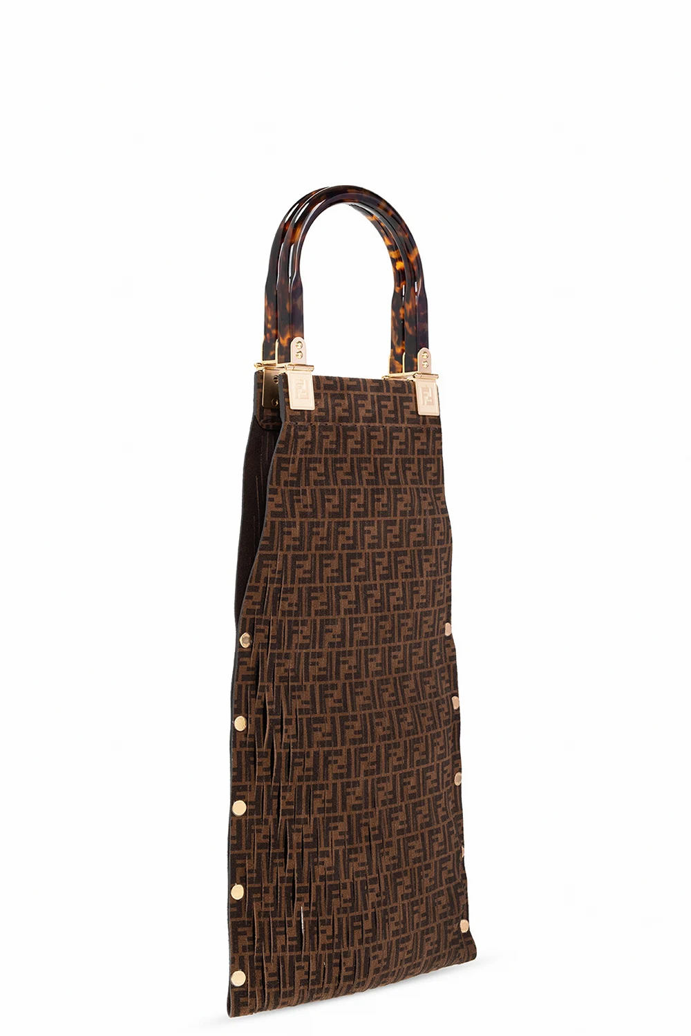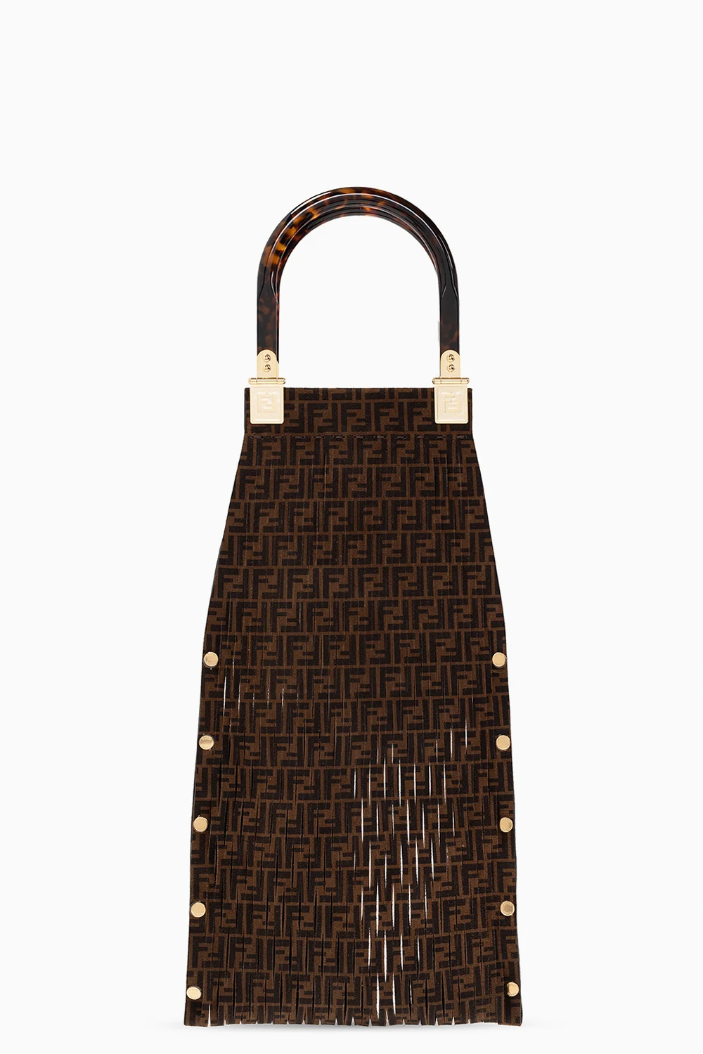 Brązowa torba do ręki, model 'Sunny' Fendi. Wykonana ze skóry cielęcej. Po bokach ćwieki z wytłoczonym wzorem z logo. Dwie półokrągłe rączki. Dekoracyjne wycięcia. Wewnątrz komora. Metalowe wykończenie w kolorze złotym.