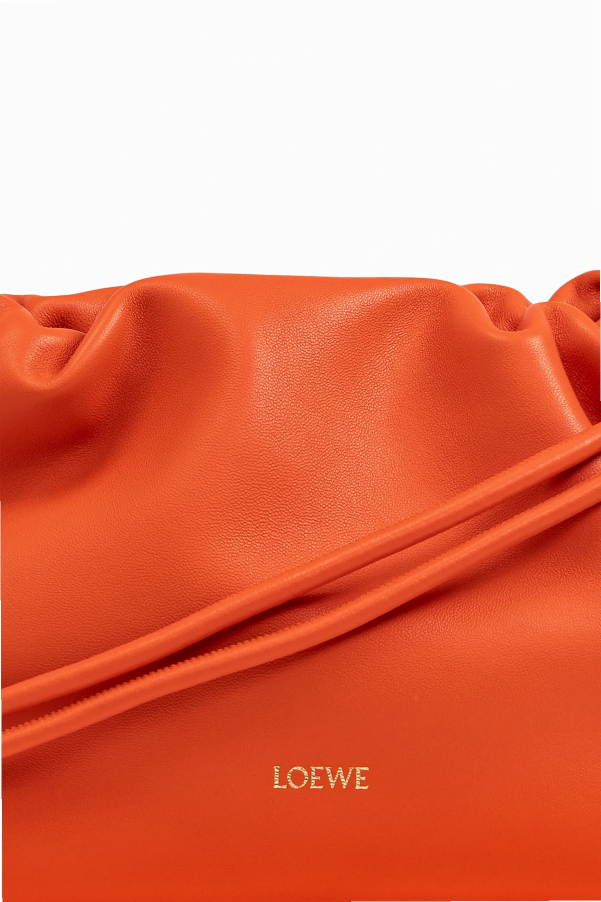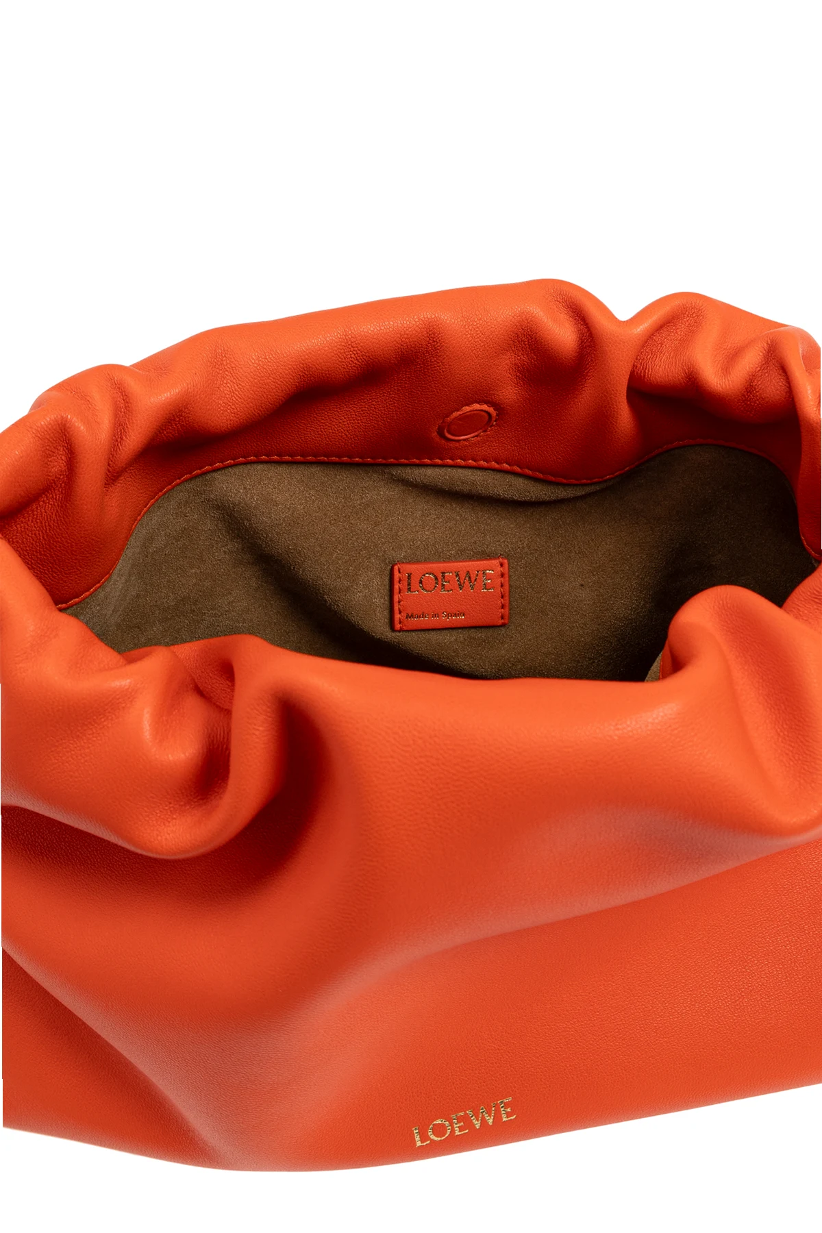 Wykonana z najwyższej jakości skóry jagnięcej, torba ta urzeka luksusowym wyglądem i niezrównaną trwałością. Dominujący neonowopomarańczowy kolor nadaje jej wyrazisty i nowoczesny charakter, który przyciąga wzrok. Subtelne, złote logo Loewe na przodzie dodaje elegancji, a wnętrze wyścielone brązowym zamszem oraz skórzana etykieta z logiem marki podkreślają dbałość o każdy detal.