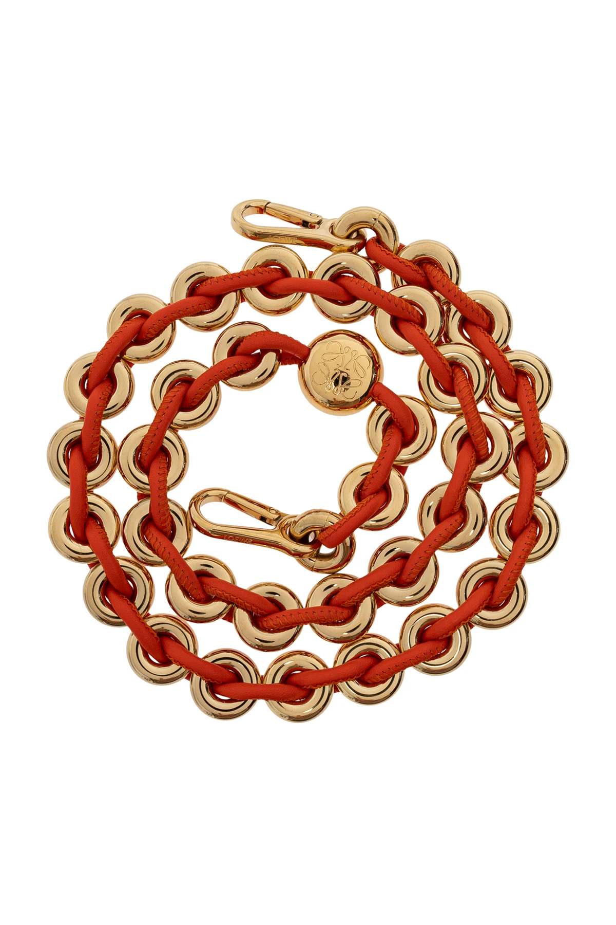 Do torby dołączony jest pasek w formie łańcucha, połączony z pomarańczowym skórzanym paskiem, co umożliwia wygodne noszenie torby na ramieniu. Torba ma średnią wielkość, co sprawia, że jest idealnym towarzyszem na co dzień, a jednocześnie eleganckim akcesorium na bardziej formalne okazje.