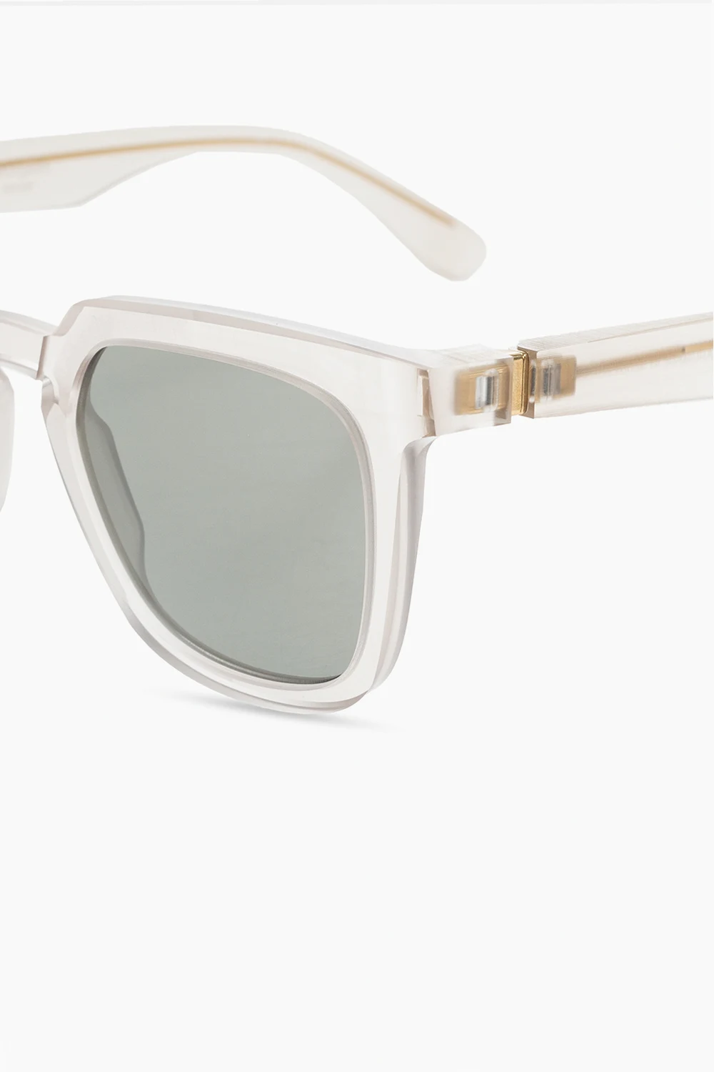 Okulary przeciwsłoneczne, model ‘MMRAW008’ Mykita X Maison Margiela. Transparentne oprawki w kolorze szarym. Szare, certyfikowane soczewki UVA/UVB. Dołączone jasnoszare etui z logo.