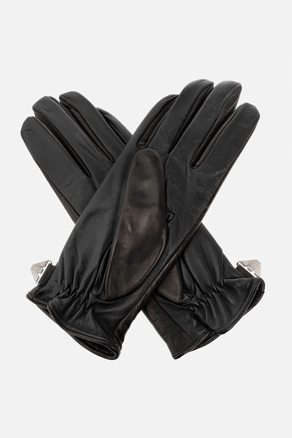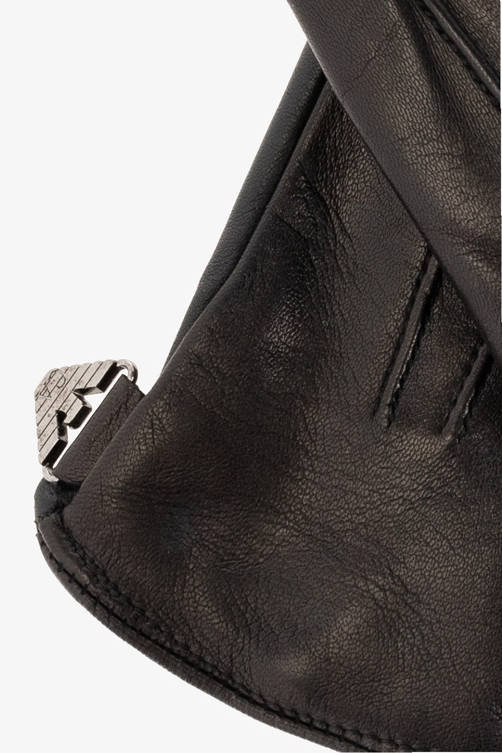 Czarne rękawice Emporio Armani. Wykonane z owczej skóry. Dekoracyjne przeszycia. Aplikacja z logo w kolorze srebrnym.