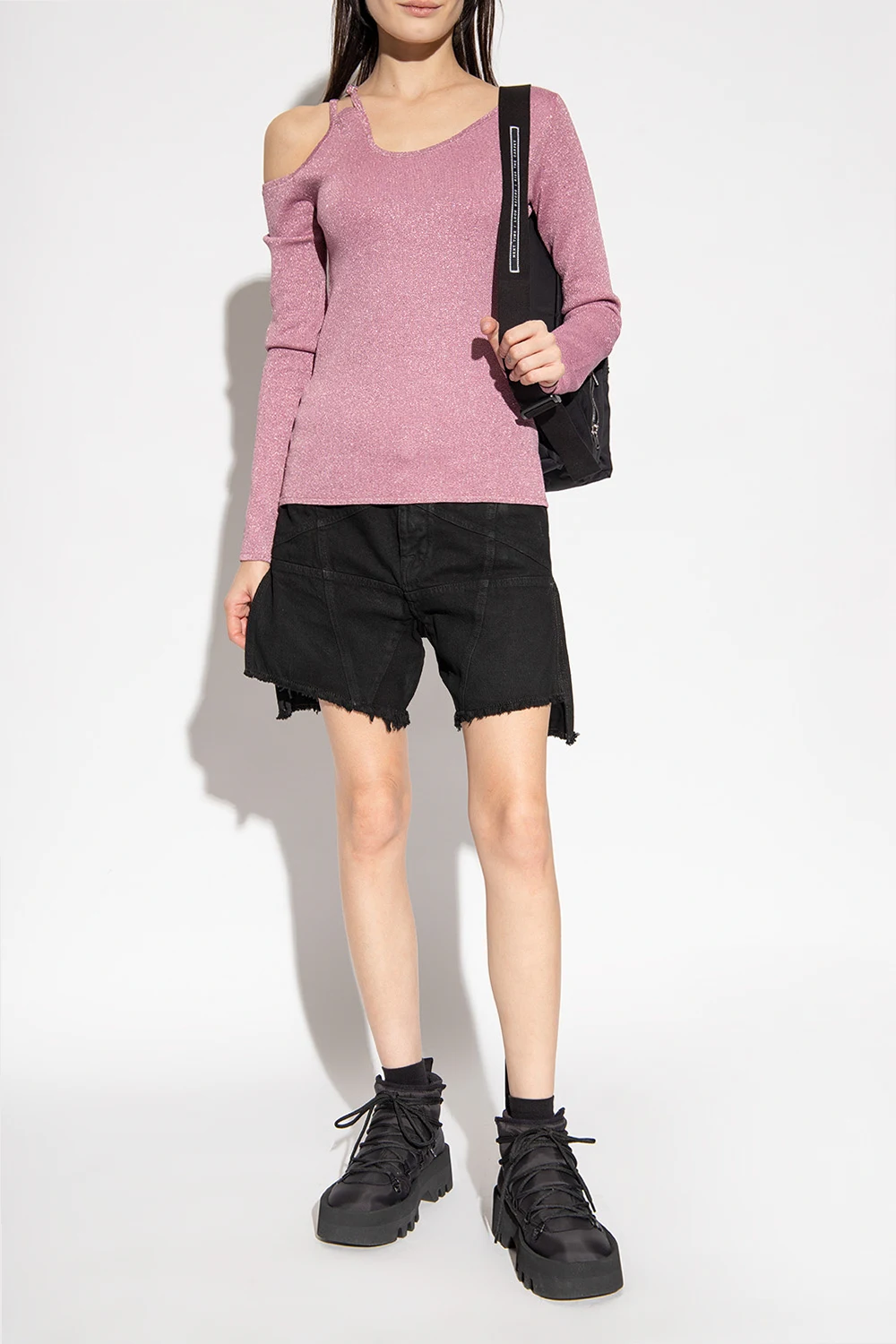 Czarne, sznurowane trapery J.W. Anderson. Z tyłu rypsowy pasek z logo w kolorze białym. Czarna, gumowa podeszwa.