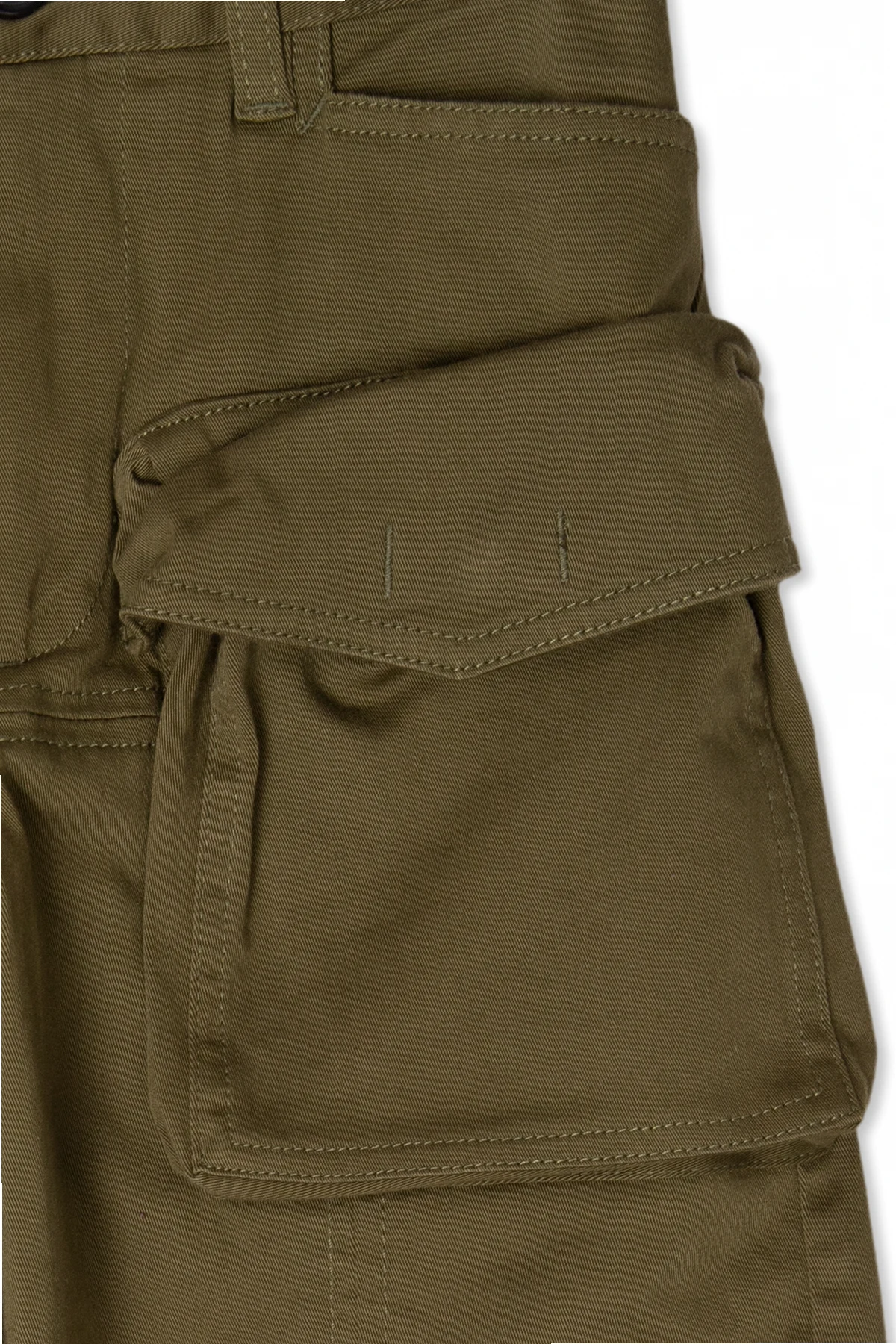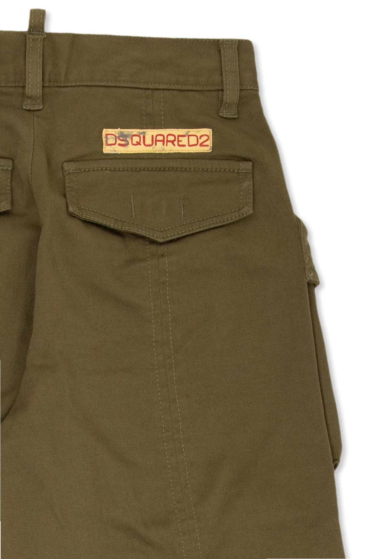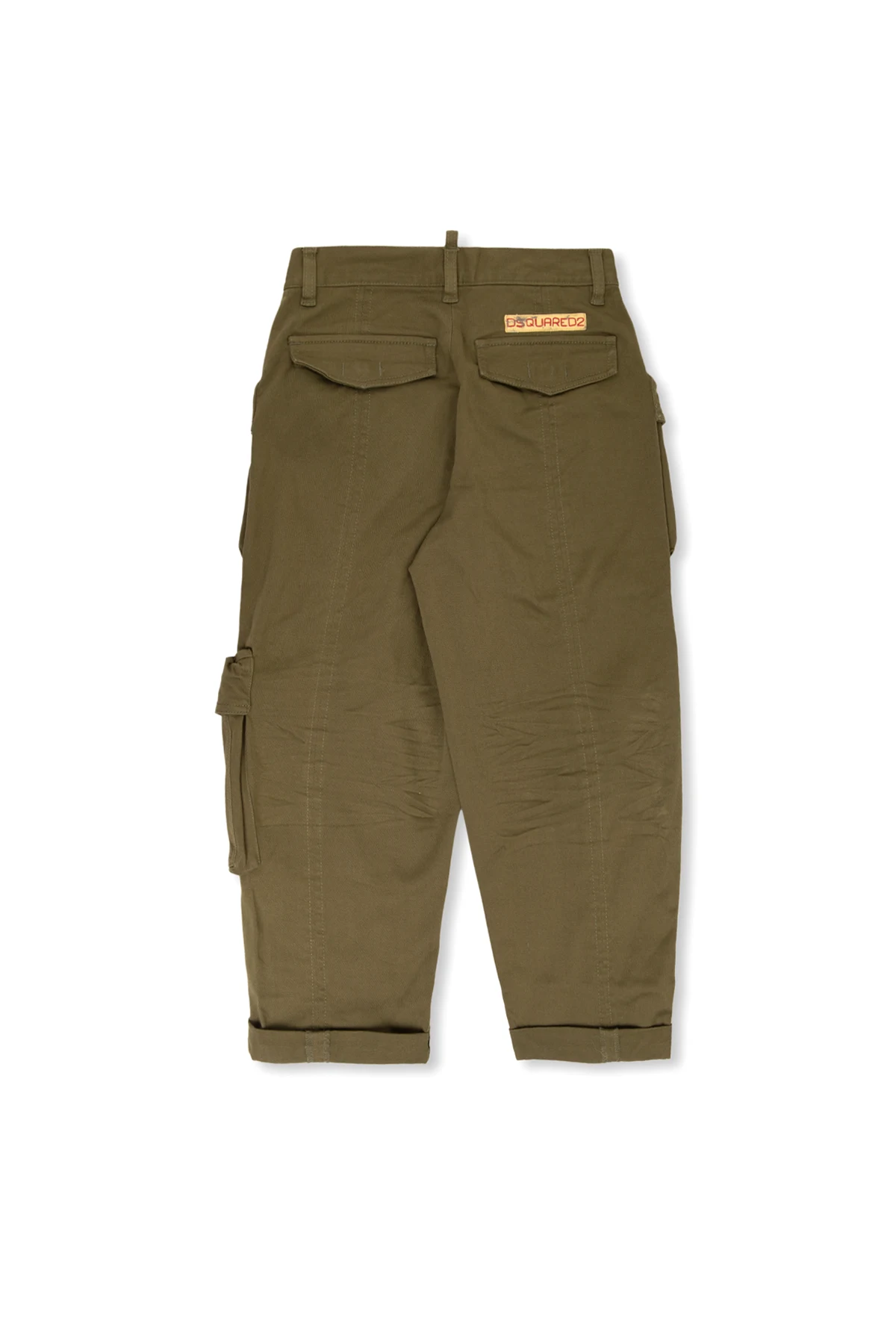 Zielone, bawełniane spodnie typu ‘cargo’ Dsquared2 Kids. Zapinane na zamek i guzik. Liczne kieszenie. Z tyłu naszywka z logo. Zawijane nogawki o prostym kroju.