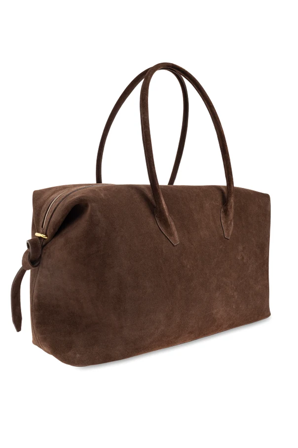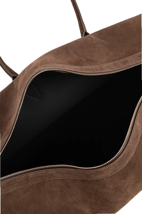 Warstwa zewnętrzna, utkana z luksusowego zamszu ze skóry bydlęcej, urzeka matowym wykończeniem oraz aksamitną fakturą, która podkreśla wyjątkowość produktu. Klasyczne, przedłużone rączki umożliwiają komfortowe noszenie torby zarówno w dłoni, jak i na ramieniu. Złocisty, metalowy zamek błyskawiczny wprowadza nutę ponadczasowej elegancji przy zachowaniu wygody i bezpieczeństwa. Dyskretna forma, pozbawiona widocznych logotypów, czyni ją kwintesencją wyrafinowanego smaku.