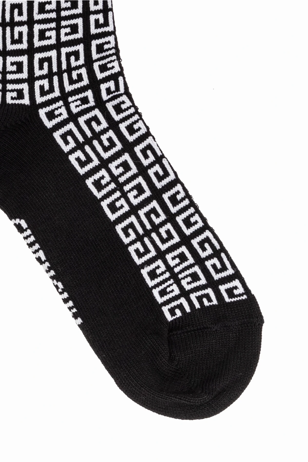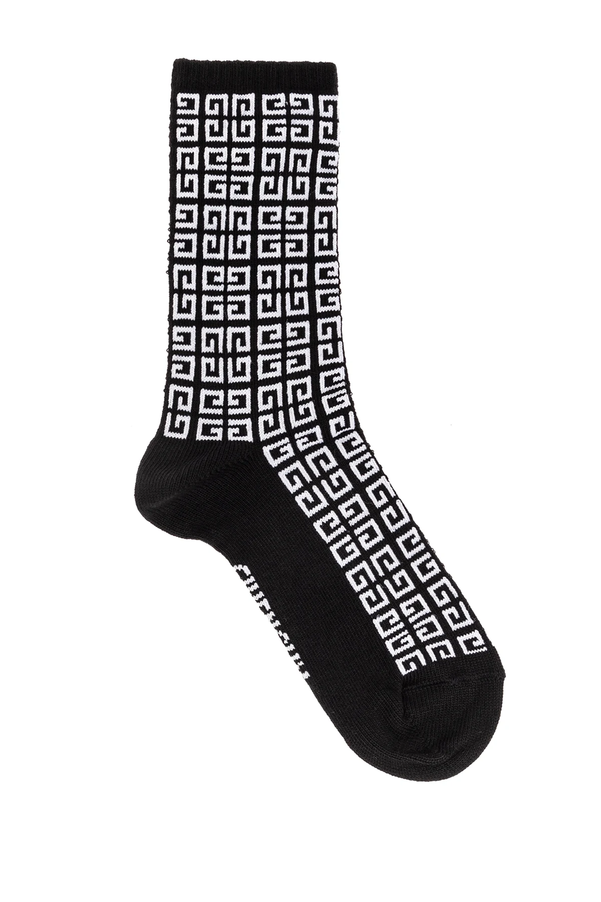Czarne skarpety Givenchy Kids. Ozdobione białym wzorem z monogramem. Wykończone ściągaczem.
