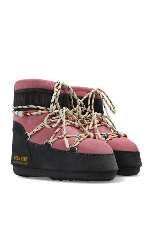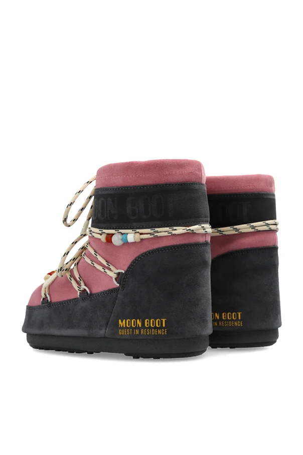 Śniegowce X Gir Icon Low Suede Beads marki Moon Boot Kids to wyraz niewymuszonej elegancji z nutą dziecięcej fantazji. Ich niska, szeroko wyprofilowana cholewka, wykonana ze szlachetnego zamszu, harmonijnie łączy dominujący różowy ton z głębokim ciemnym dołem, tworząc wyjątkowe dwukolorowe zestawienie. Ocieplana skórzana wyściółka oraz wodoodporne materiały zapewniają komfort termiczny i ochronę przed wilgocią.