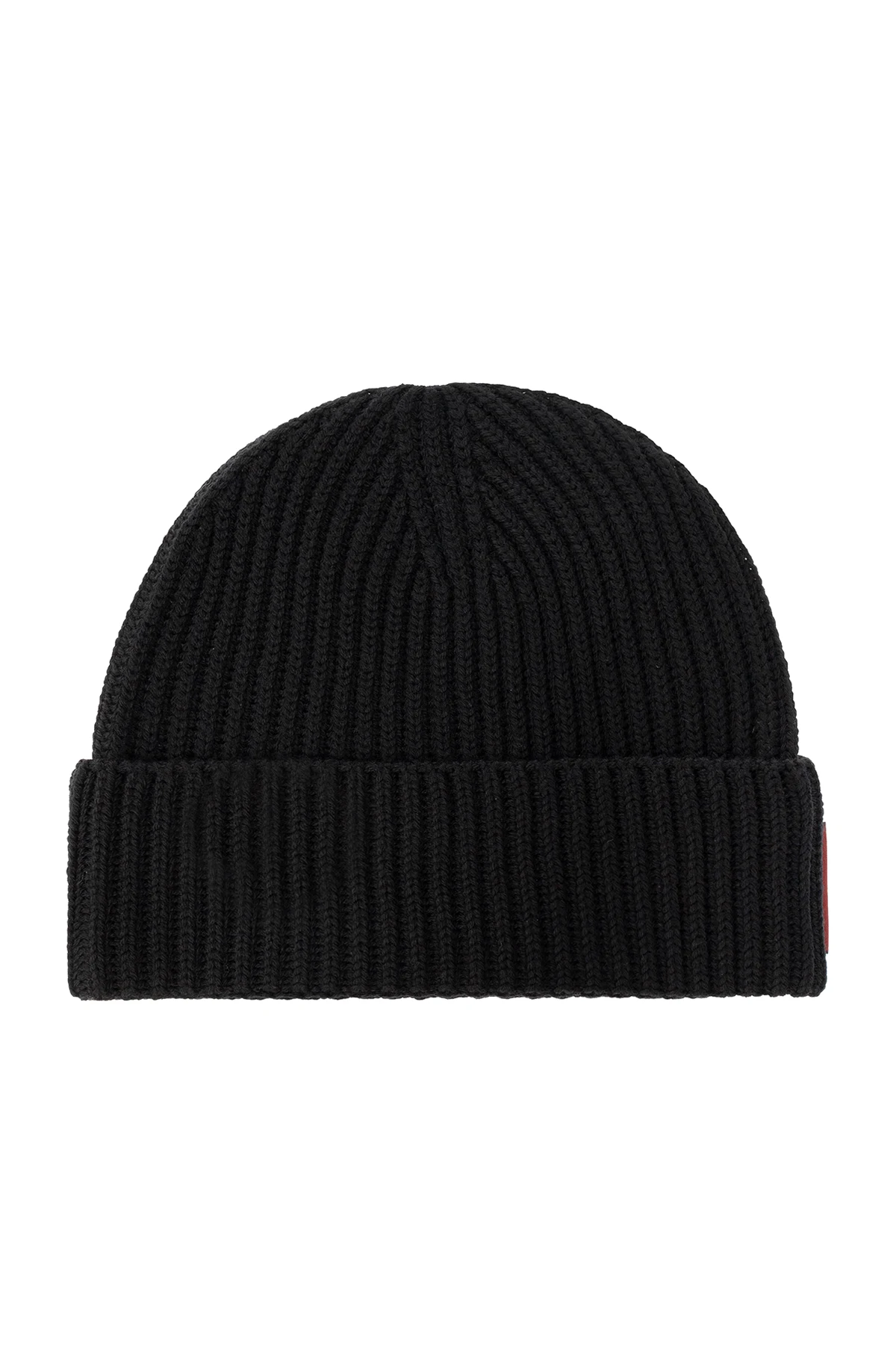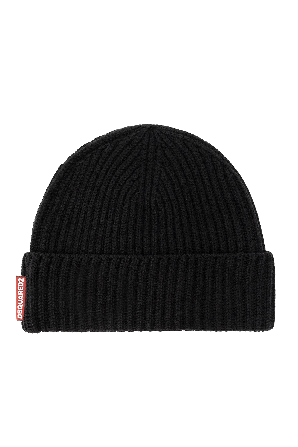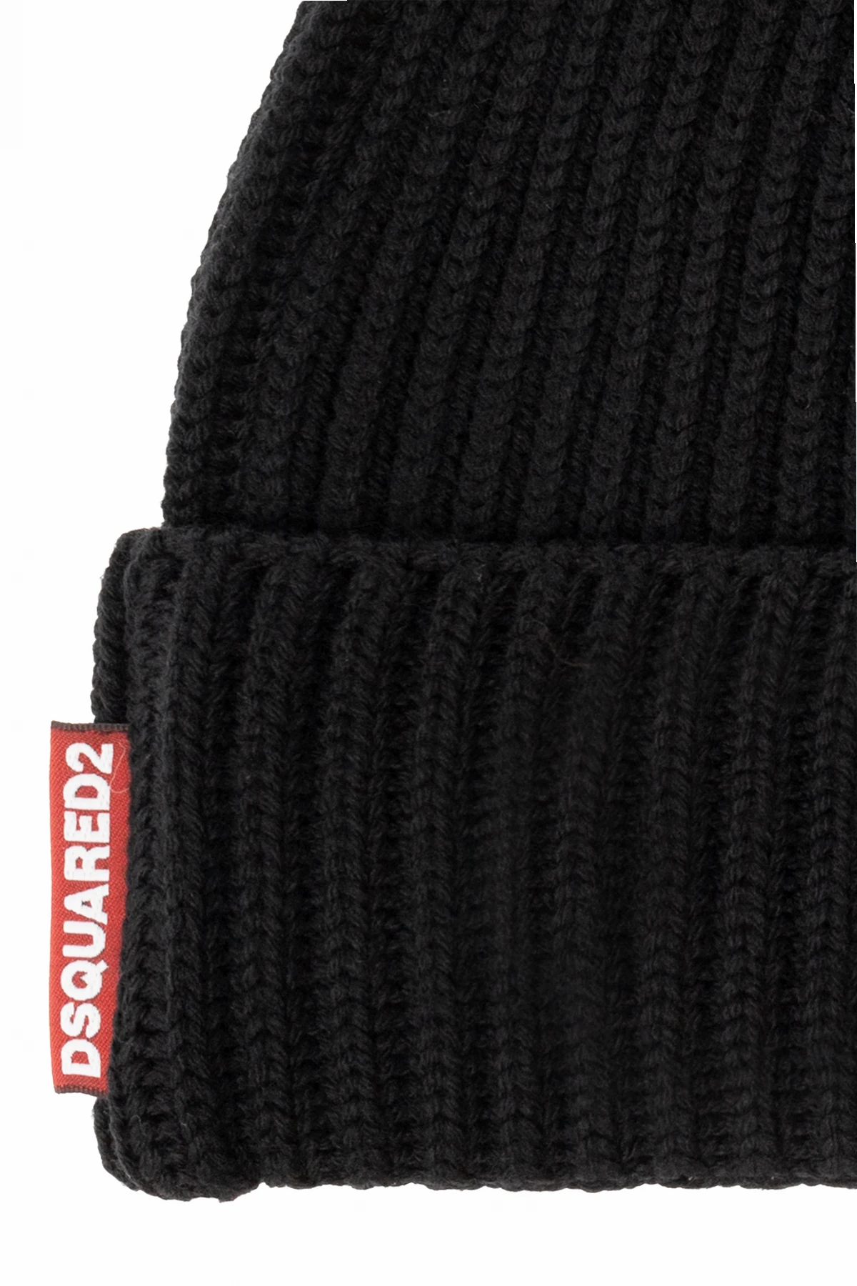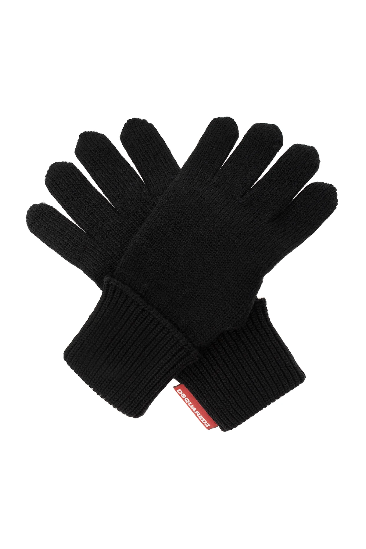 Czarny zestaw: czapka i rękawiczki Dsquared2. Wykonany z wełny. Ozdobiony naszywką z logo w kolorze biało-czarnym.