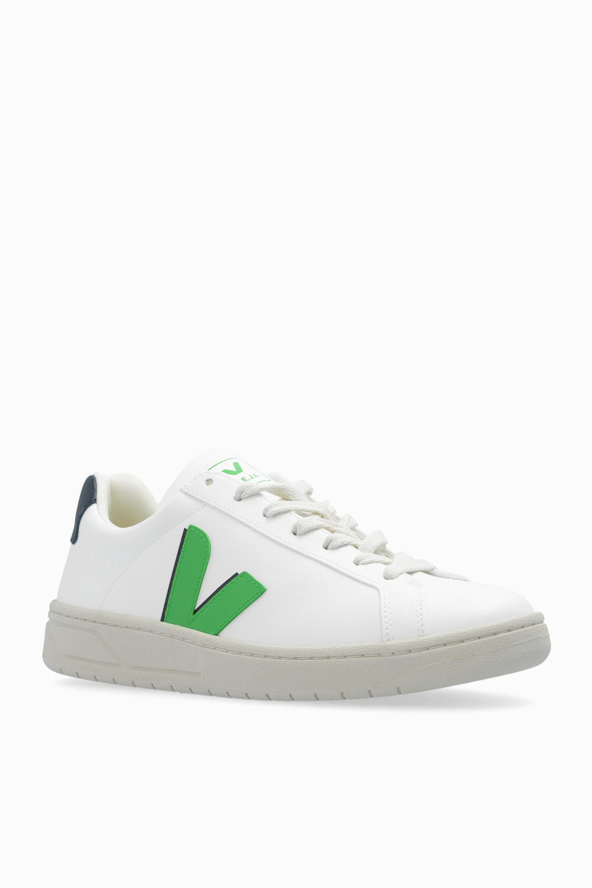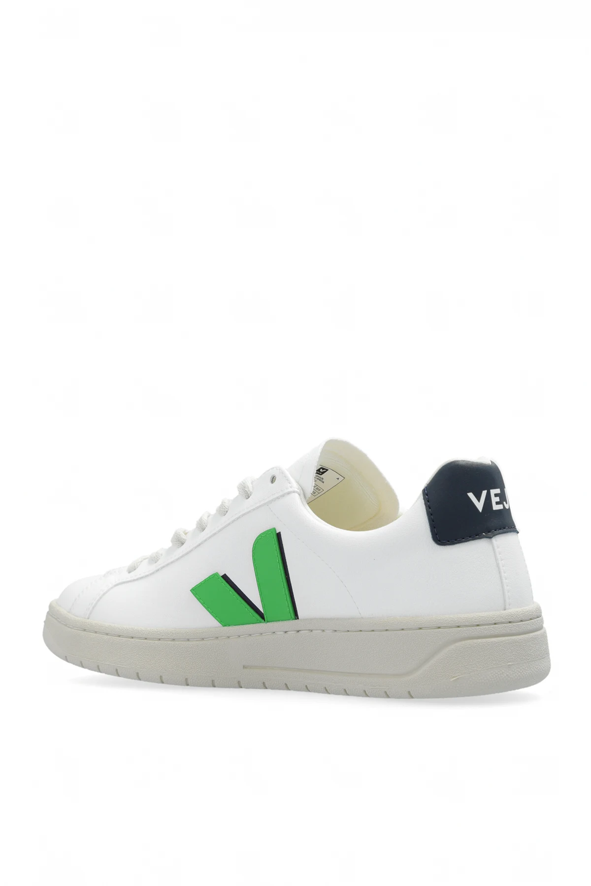 Biało-zielone, sznurowane buty sportowe, model ‘Urca W CWL’ Veja. Wykonane z CWL (bawełna organiczna pokryta żywicą na bazie poliuretanu, skrobi kukurydzianej i oleju rycynowego). Sznurowadła z bawełny organicznej. Z boku naszywka w kształcie litery ‘V’. Na języku i z tyłu logo. Wewnątrz materiał z recyklingu. Wkładka z gumy amazońskiej, bio EVA, EVA z recyklingu i bawełny organicznej. Kremowa podeszwa wykonana z gumy amazońskiej, krzemionki mineralnej, gumy z recyklingu i syntetycznej.
