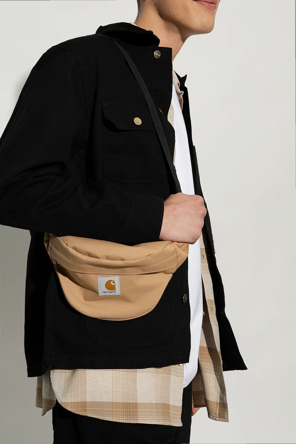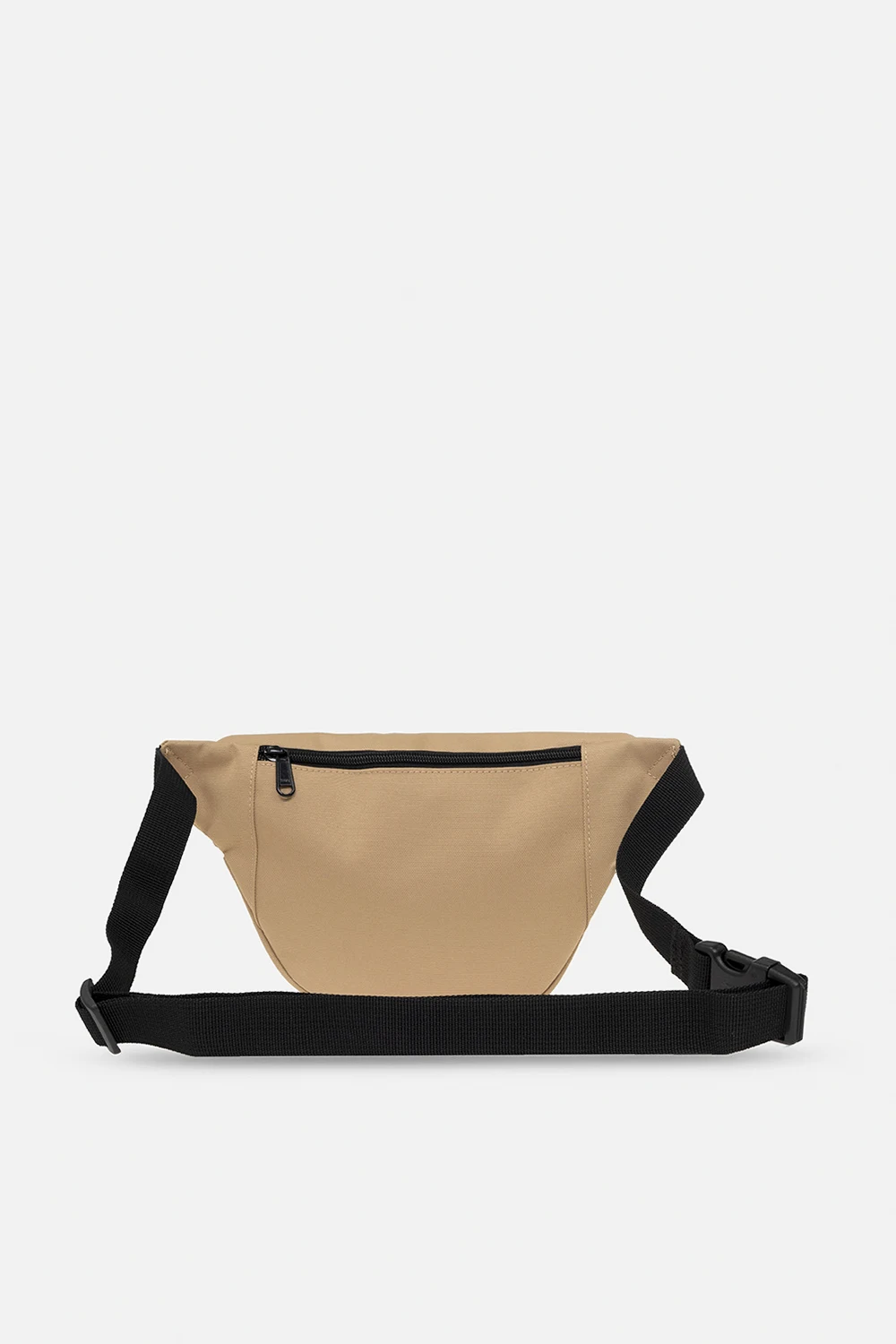 Beżowa torba na pas, model ‘Jake’ Carhartt WIP. Wykonana z materiału pochodzącego z recyklingu. Zapinana na zamek. Naszywka z logo. Z tyłu kieszeń zapinana na zamek. Pasek z możliwością regulacji długości. Wewnątrz komora.