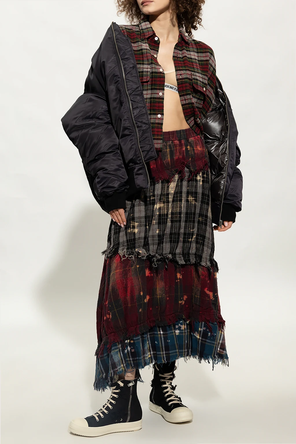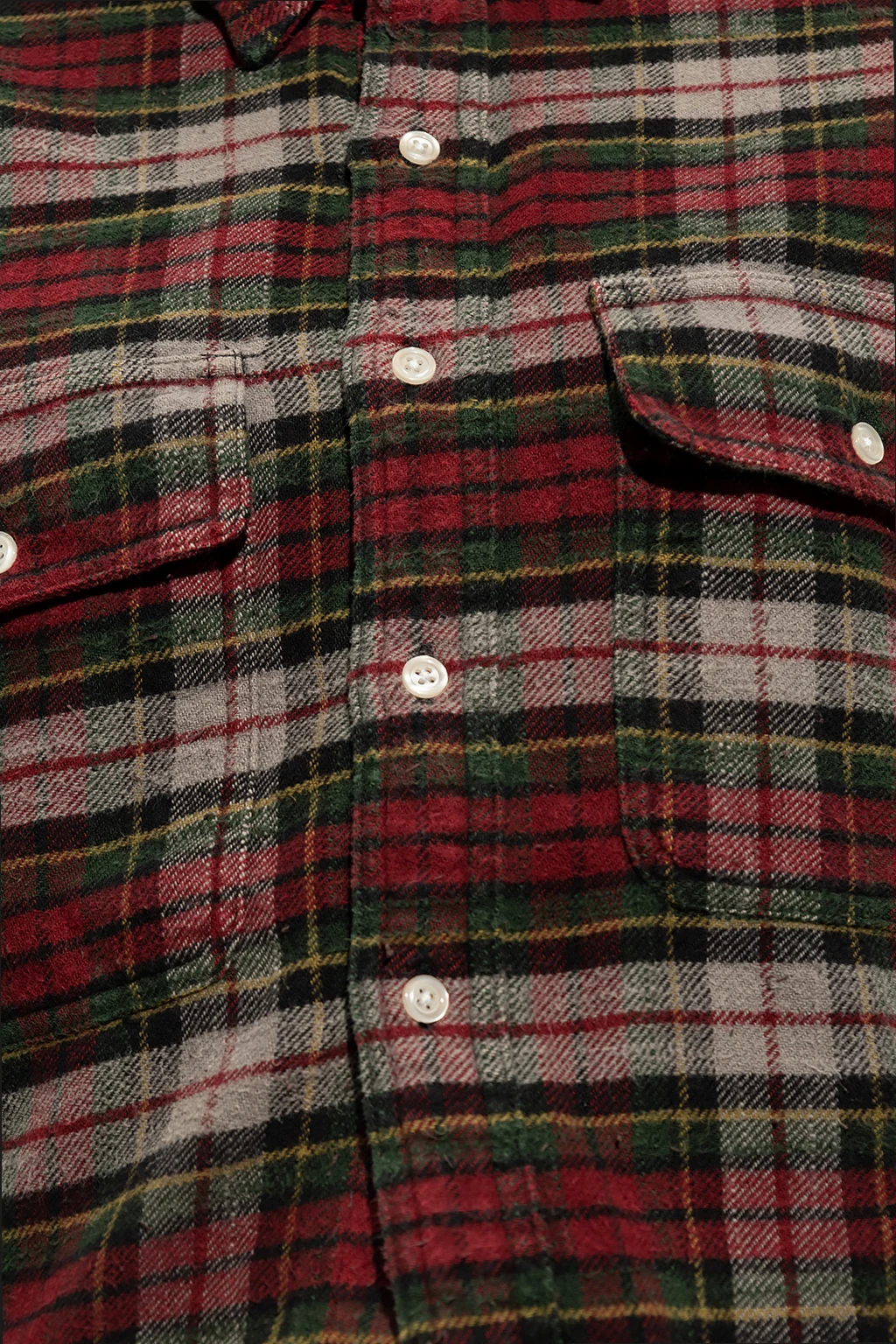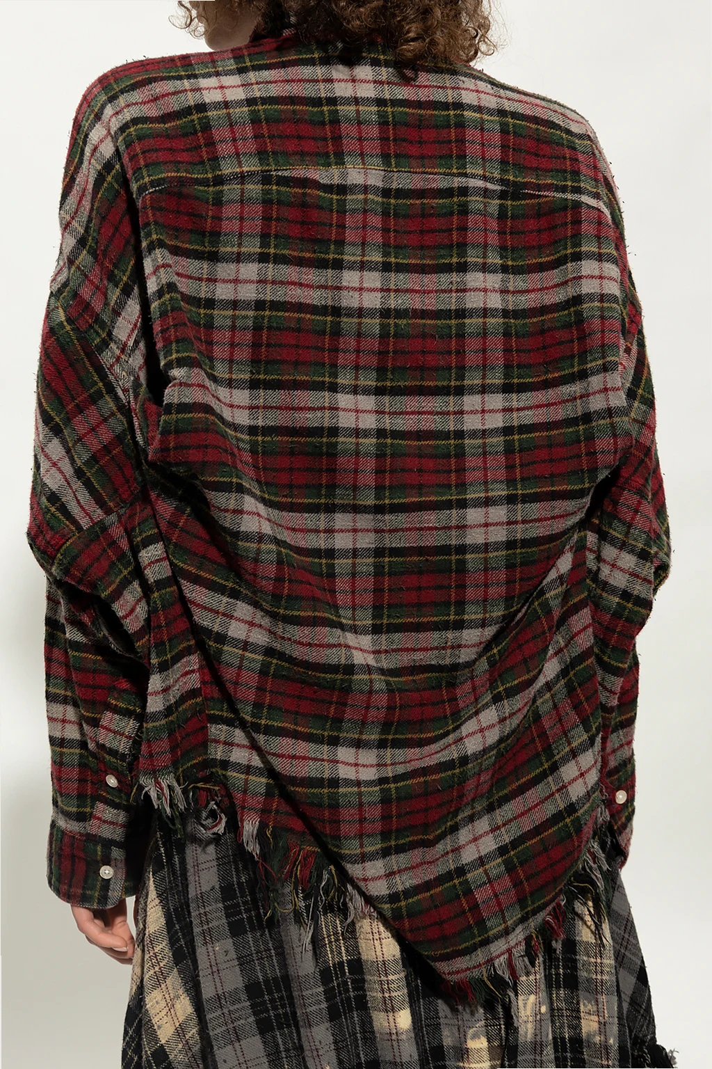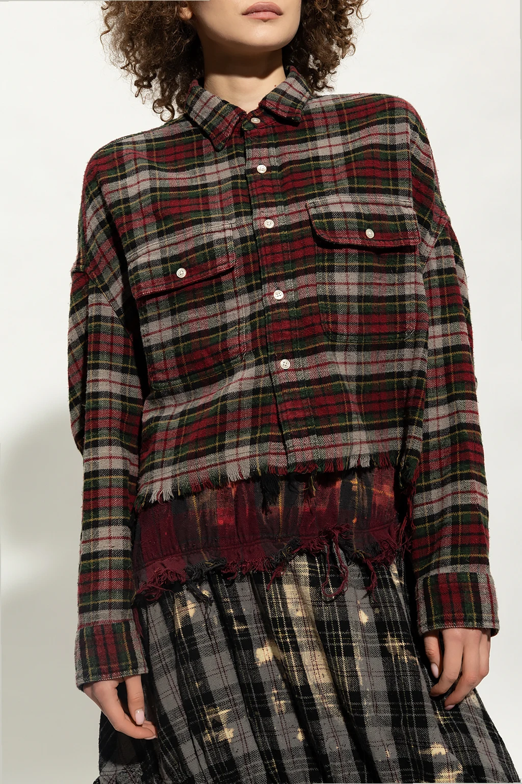 Kolorowa, krótka koszula o kroju typu ‘oversize’ R13. Wykonana z bawełnianej flaneli z efektem ‘vintage’. Zapinana na guziki. Ozdobiona wzorem z motywem kraty. Dwie kieszenie z patkami oraz długie rękawy zakończone mankietami zapinane na guziki. Surowo wykończony dół.