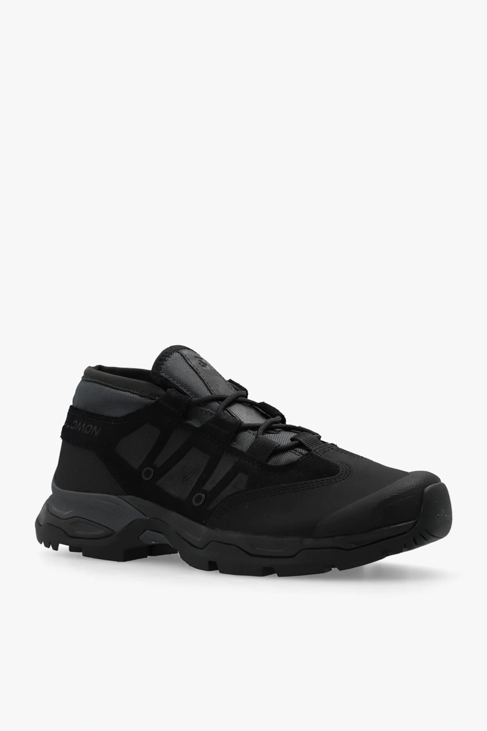Czarne, sznurowane buty sportowe, model ‘JUNGLE ULTRA LOW ADVANCED’ Salomon. Wykonane ze skóry, materiału i materiałów syntetycznych. Ozdobione logo oraz oznaczeniem serii modelu. Czarna, gumowa podeszwa.