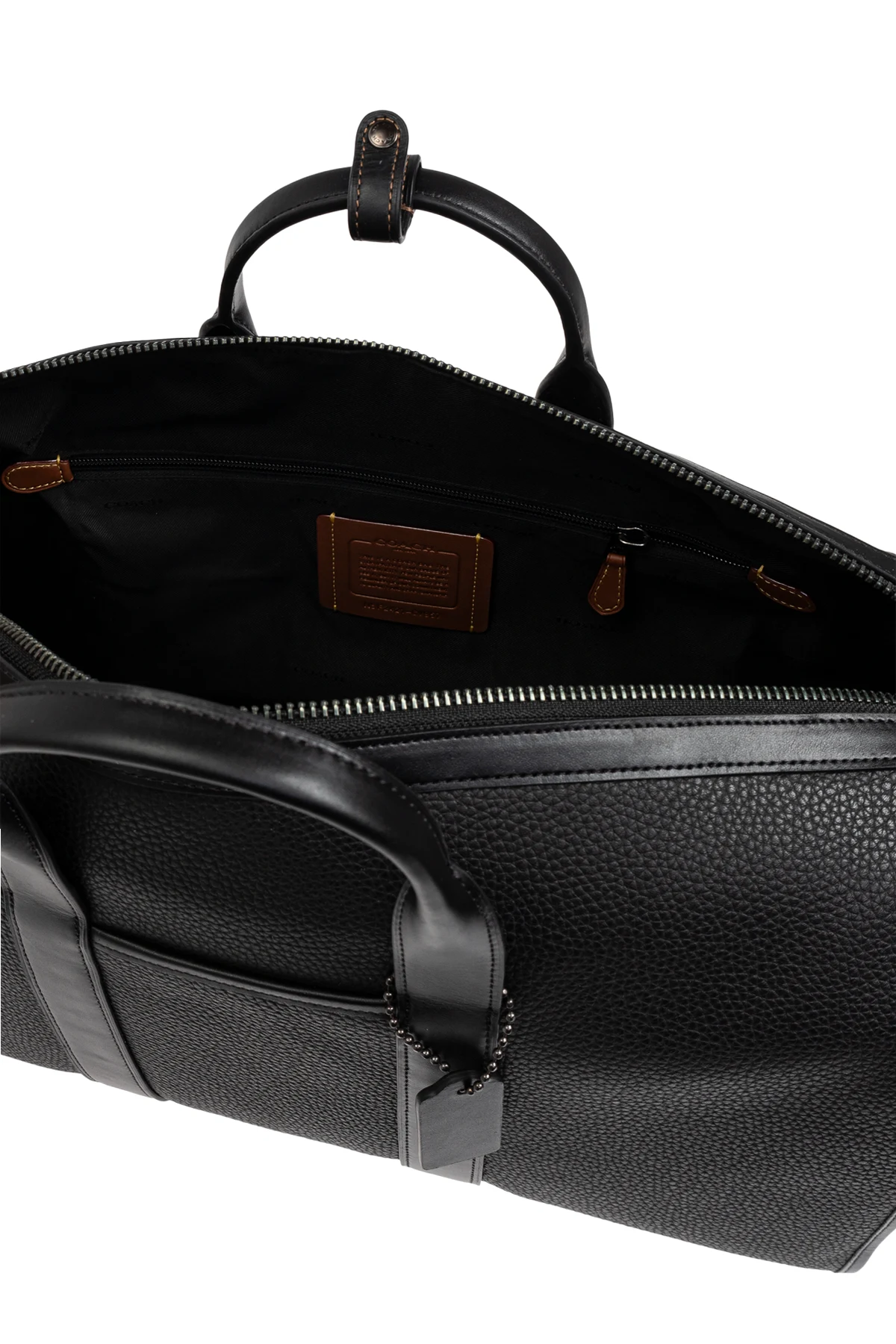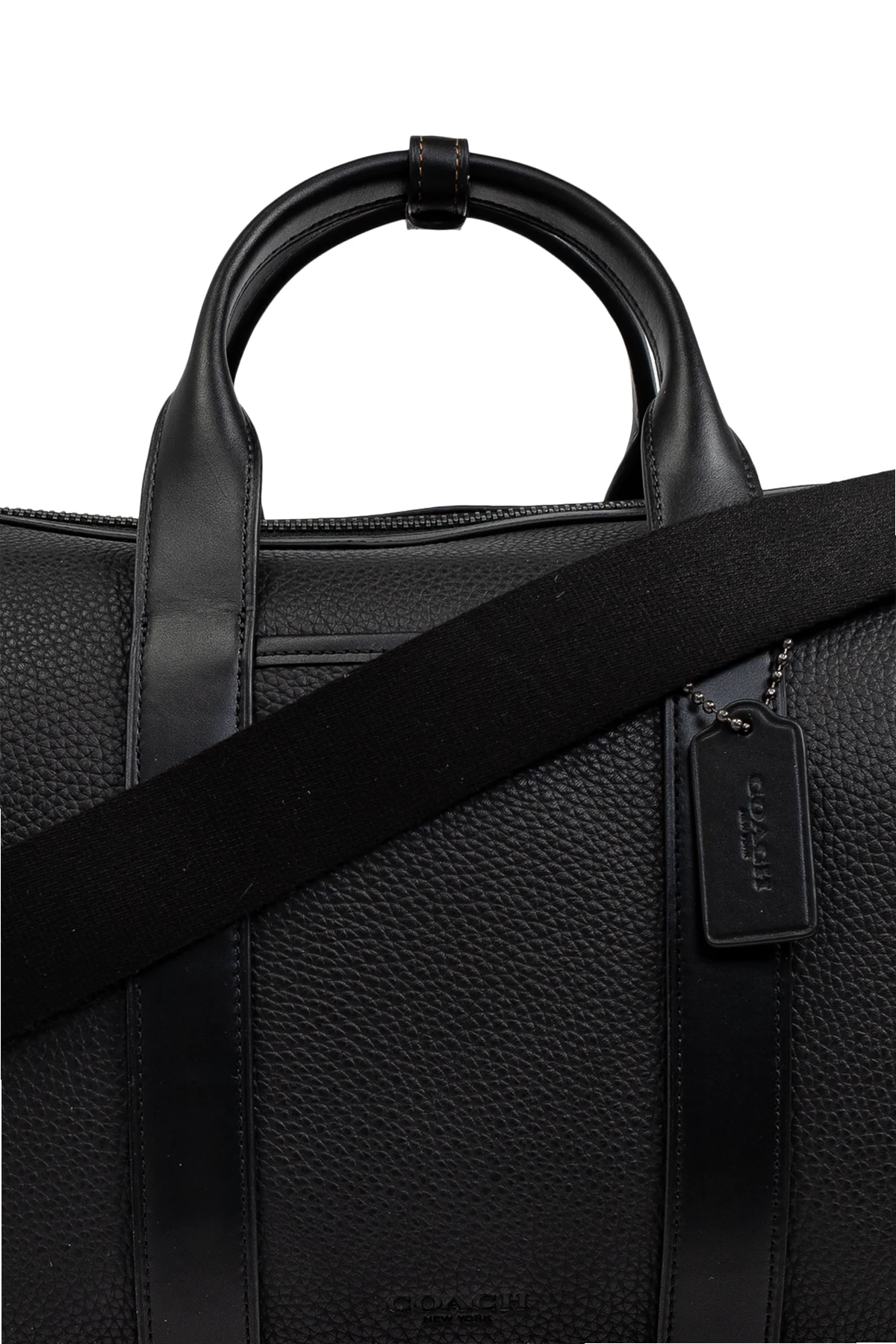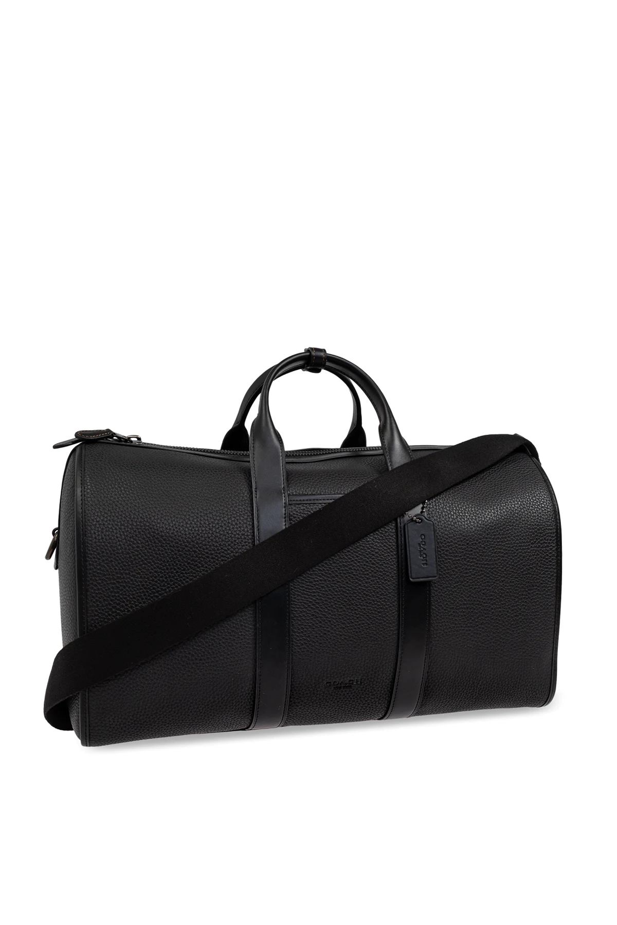Przedstawiamy Torba podręczna 'Gotham' - kwintesencję elegancji i funkcjonalności od renomowanej marki Coach . Ta czarna torba podręczna, o klasycznym cylindrycznym kształcie, wykonana jest z najwyższej jakości skóry o ziarnistej fakturze, co zapewnia jej wyjątkowy wygląd i trwałość.
