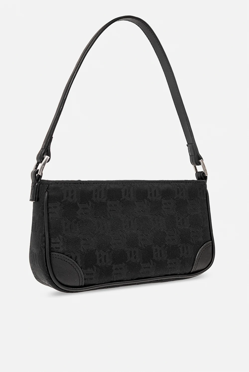 Czarna torba na ramię, model ‘Monogram 90's Mini’ MISBHV. Zamykana na zamek. Ozdobiona wzorem z monogramem. Półokrągła rączka na ramię. Wewnątrz komora. Metalowe wykończenie w kolorze srebrnym.