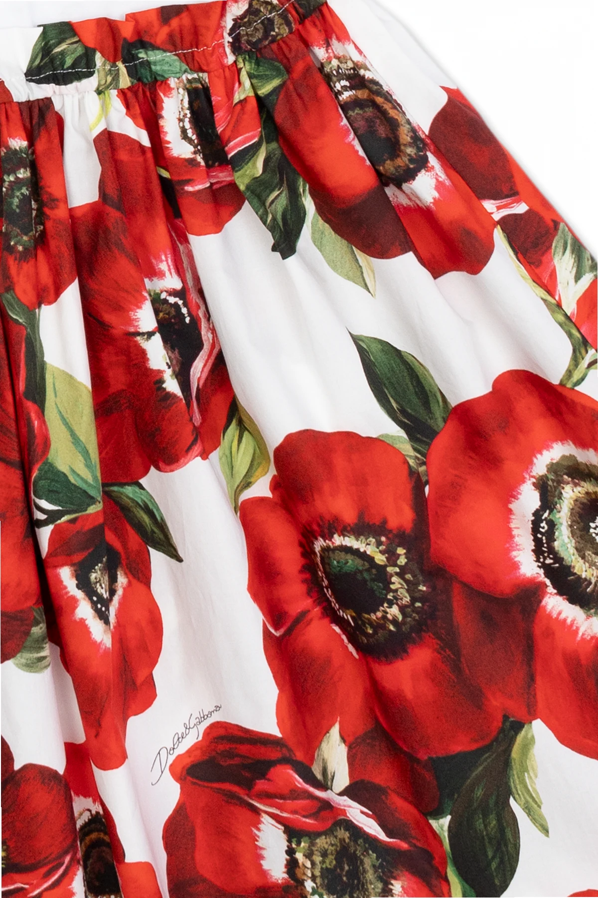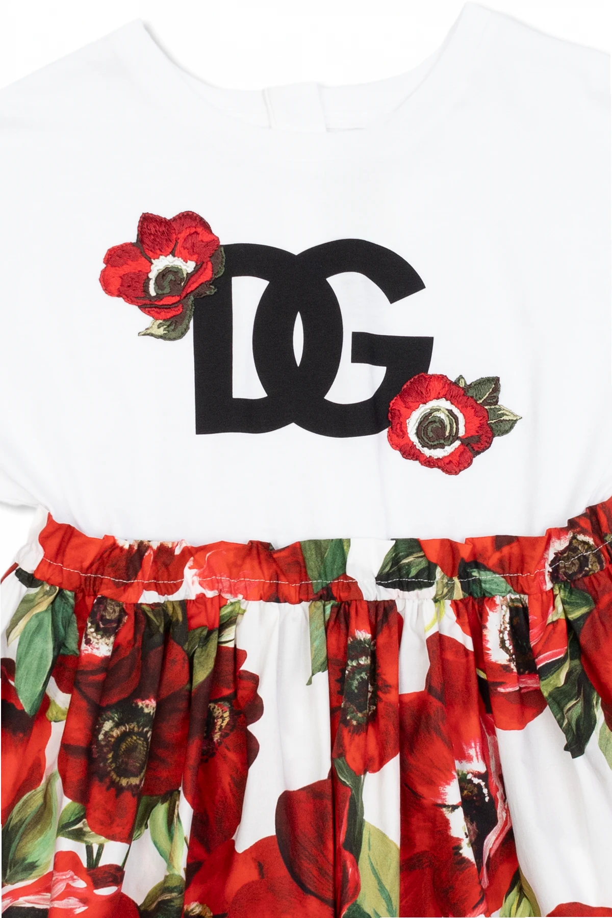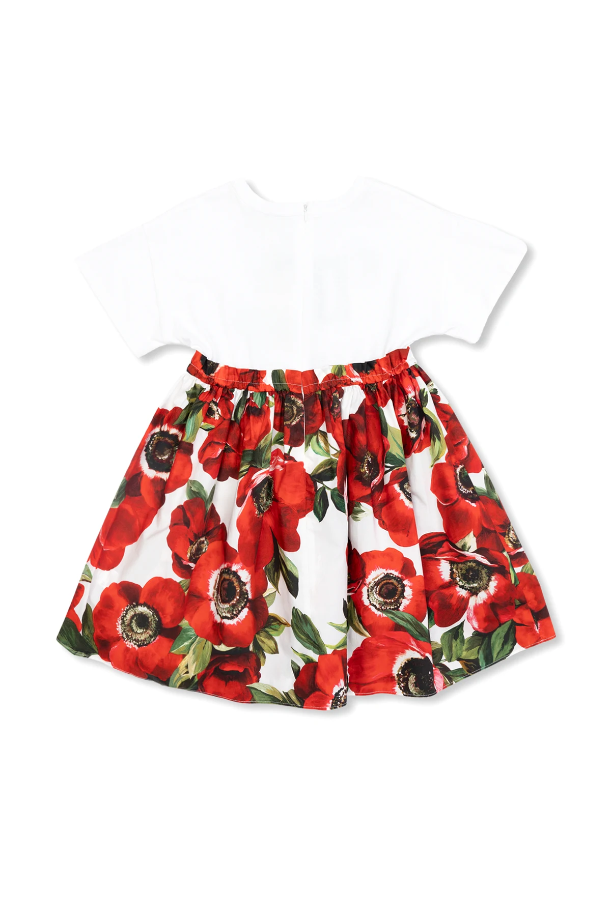 Biało-czerwono-zielona sukienka Dolce & Gabbana Kids. Wykonana z bawełny. Z tyłu zapinana na kryty zamek. Ozdobiona wzorem z motywem kwiatowym i logo.