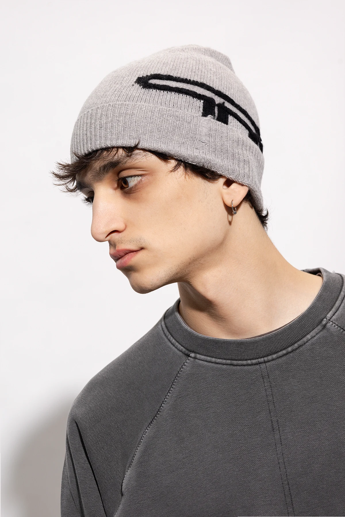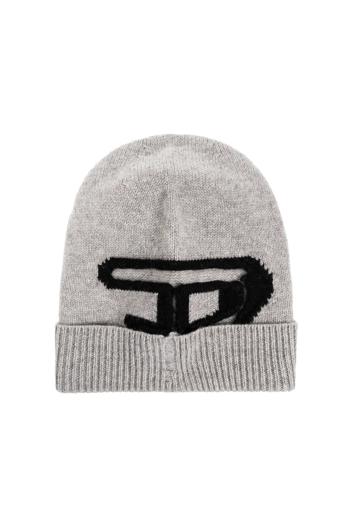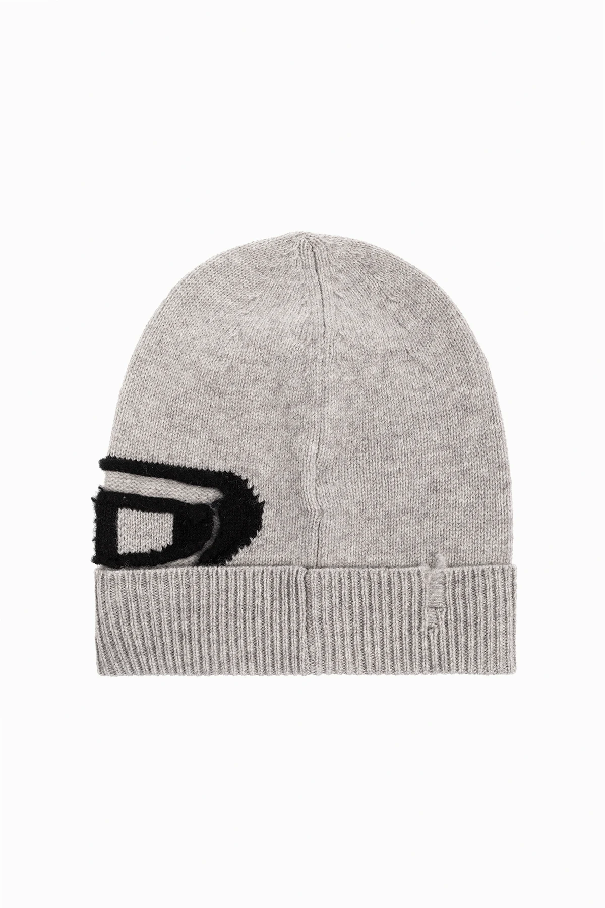 Szara czapka, model ‘K-PEEL’ Diesel. Wykonana z wełny. Ozdobiony wzorem z logo w kolorze czarnym.