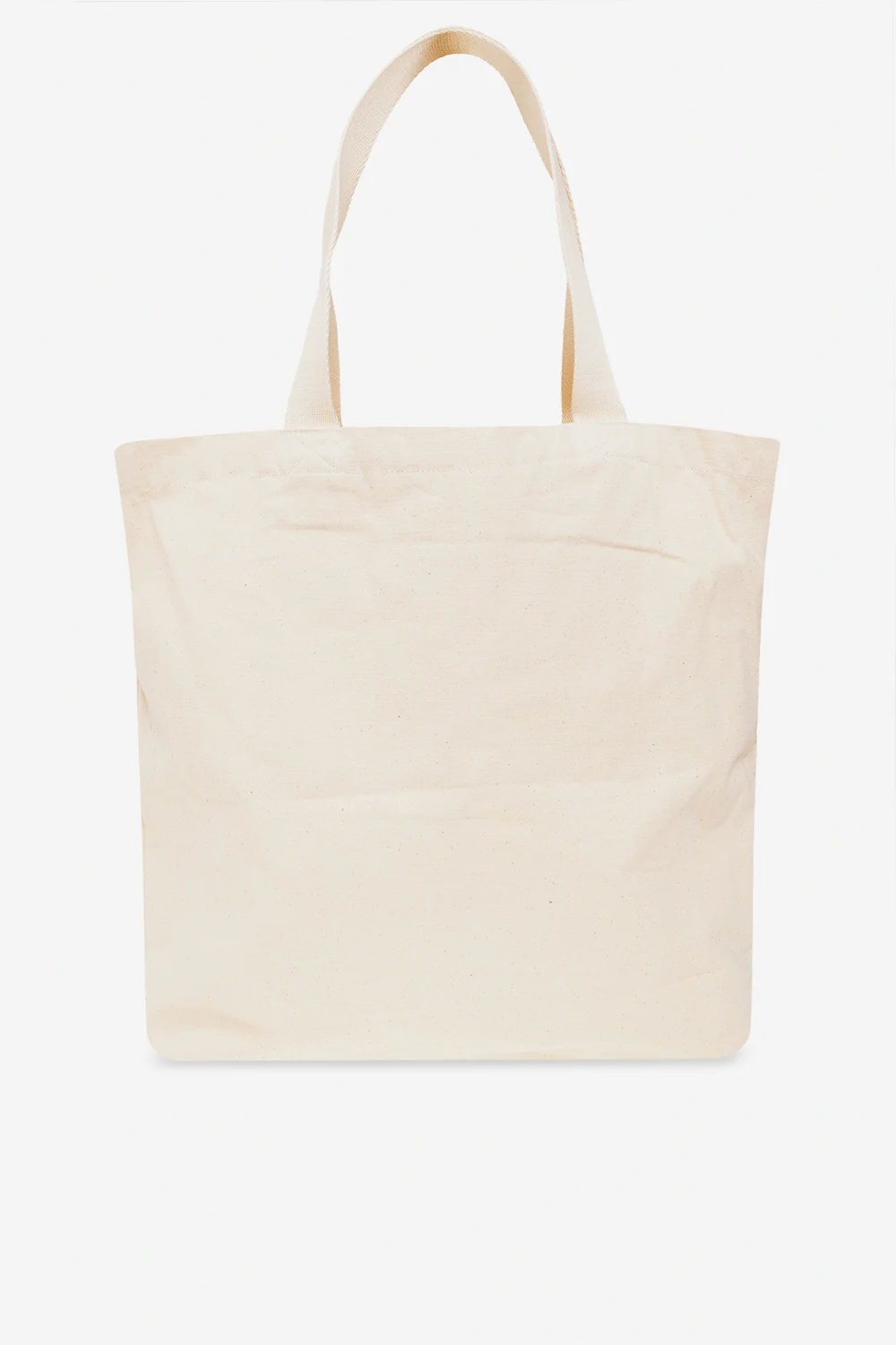 Kremowa torba typu ‘shopper’ Maison Kitsune. Wykonana z bawełny. Ozdobiona nadrukiem z logo. Dwie półokrągłe rączki. Wewnątrz komora oraz wsuwana kieszeń.