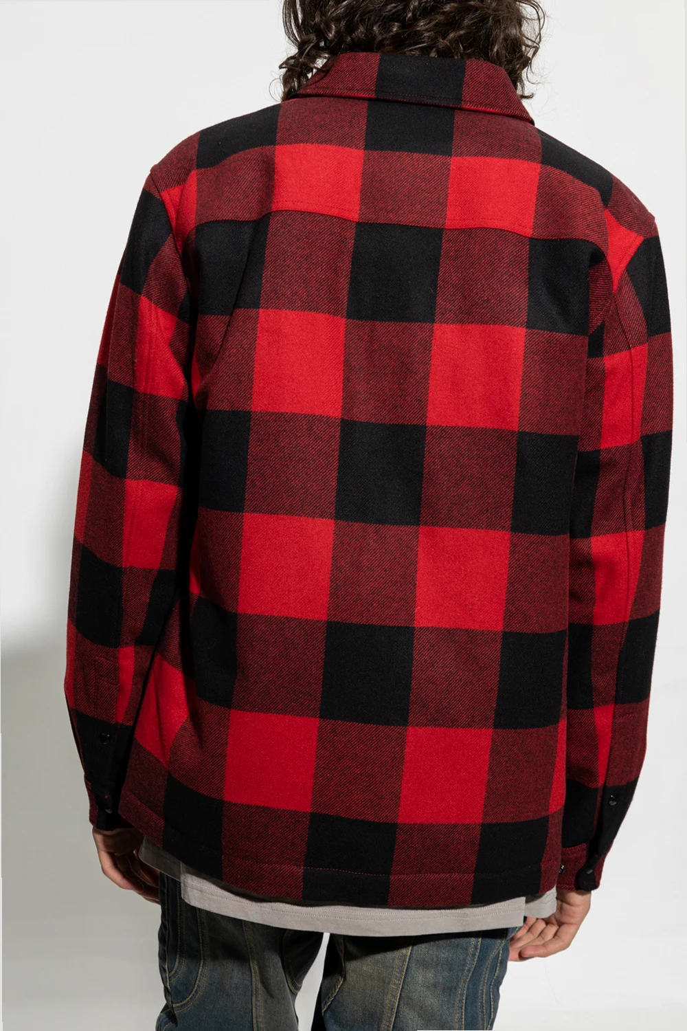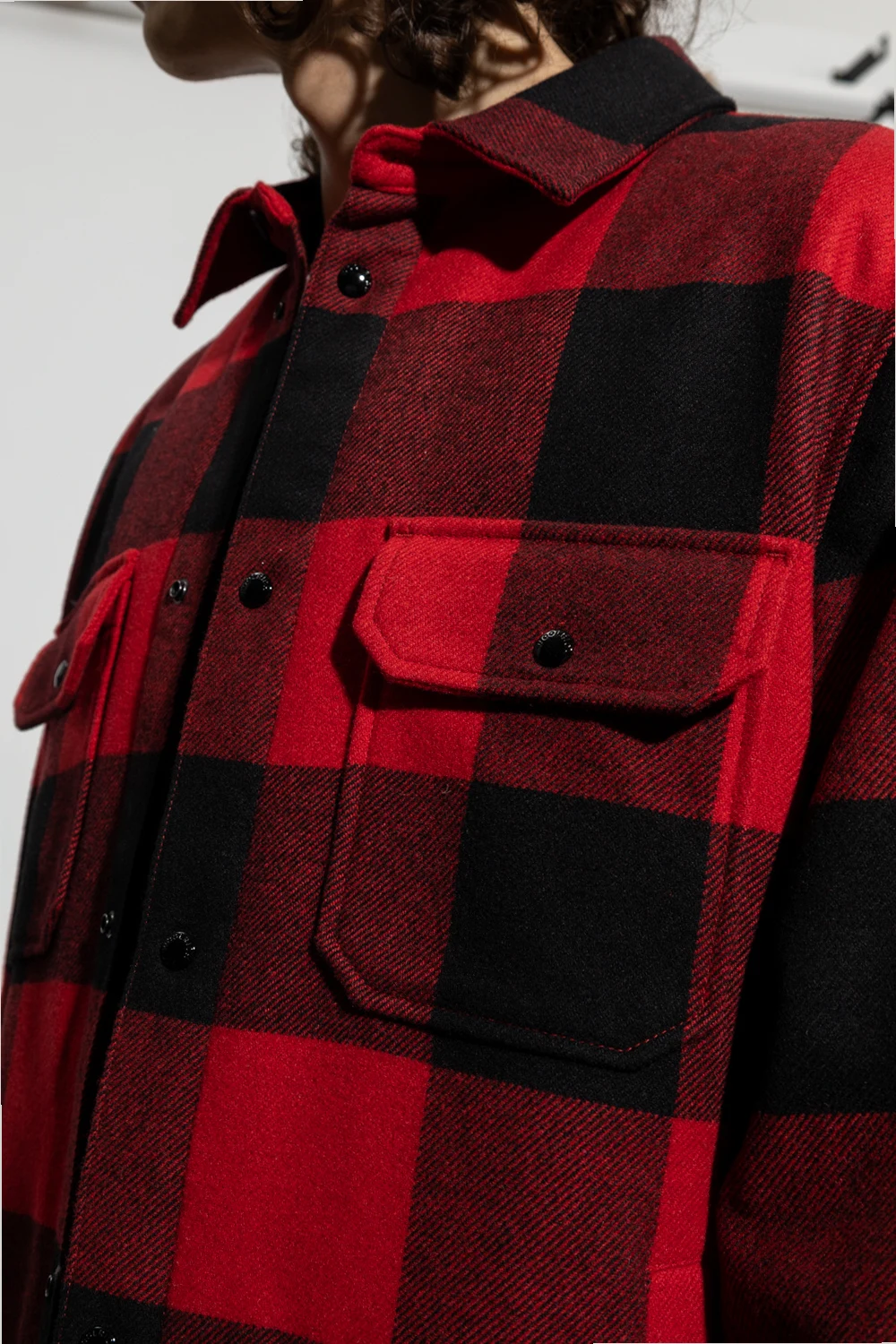 Czerwono-czarna, ocieplana kurtka o kroju koszuli Woolrich. Zapinana na zatrzaski. Cztery kieszenie: dwie wsuwane oraz dwie z patkami na zatrzaski. Z boku czarna wszywka z logo. Długie rękawy zakończone mankietami z zapięciem na zatrzaski. Zakres temperatur od 5°C do -5°C.