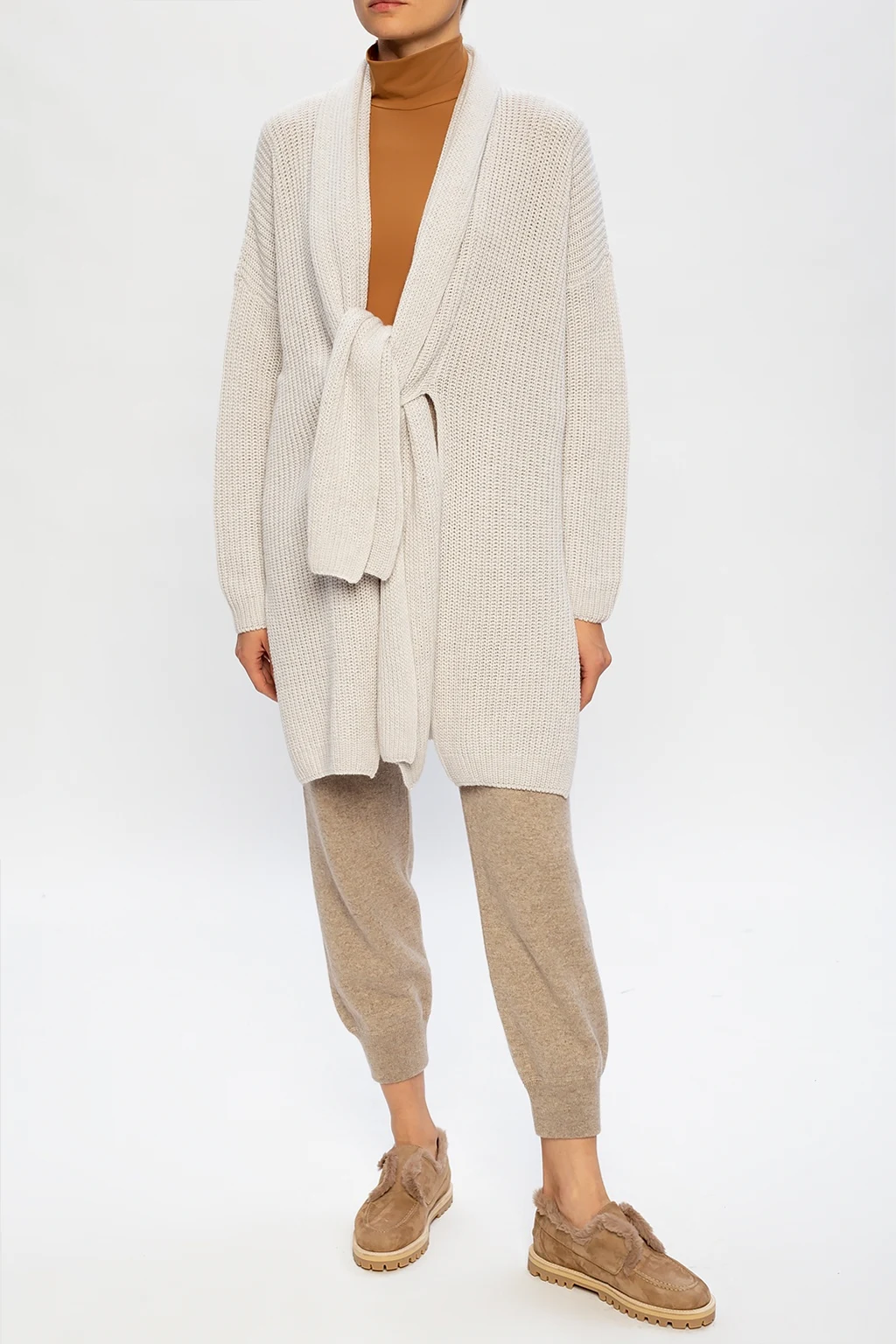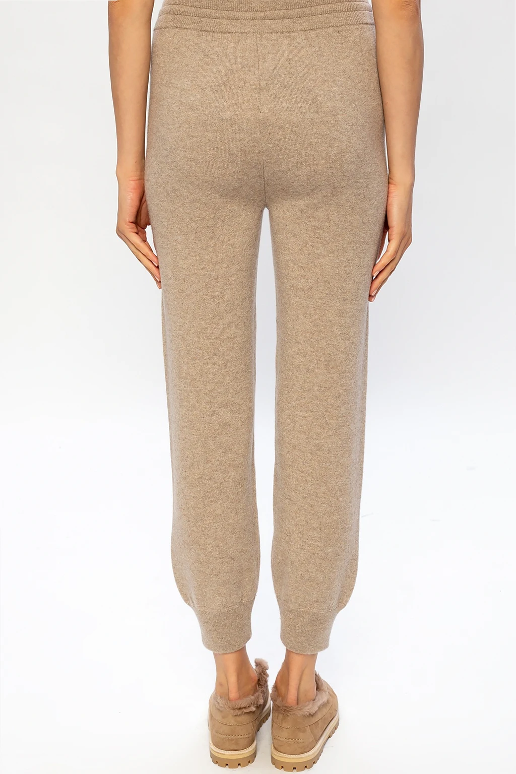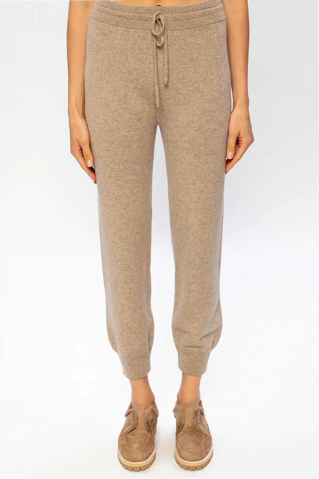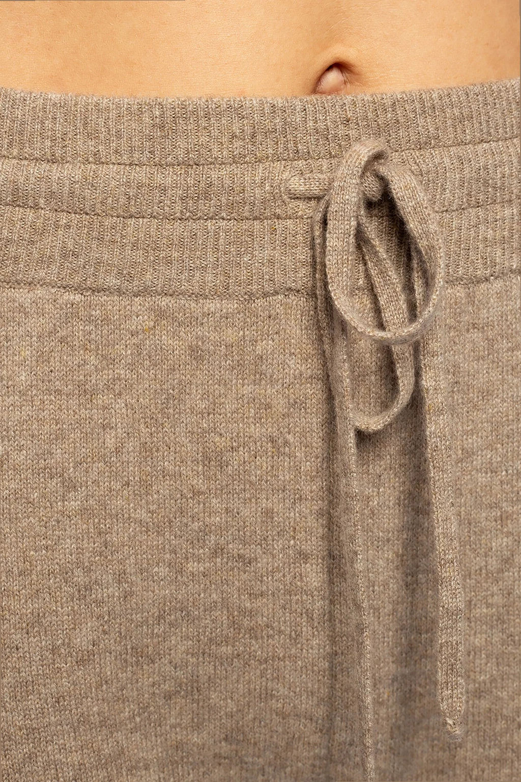 Beżowe, kaszmirowe spodnie dresowe Agnona. Ściągane trokami. W pasie wszyta guma. Nogawki zakończone ściągaczami.