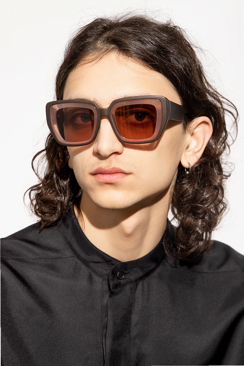 Brązowo-różowe okulary przeciwsłoneczne, model ‘STUDIO 13.2’ Mykita. Wykonane z mylonu – wyjątkowo lekkiego i wytrzymałego materiału. Różowe, certyfikowane soczewki z powłoką antyrefleksyjną i 100% ochroną UVA i UVB. Wykonane ręcznie w Berlinie.