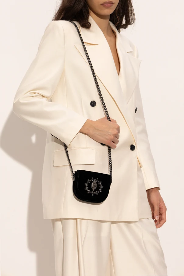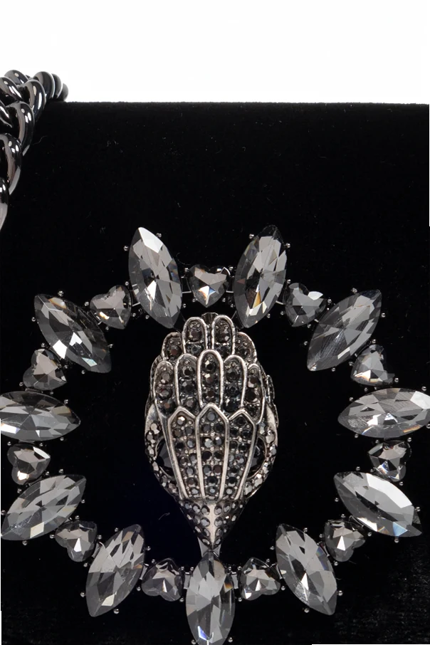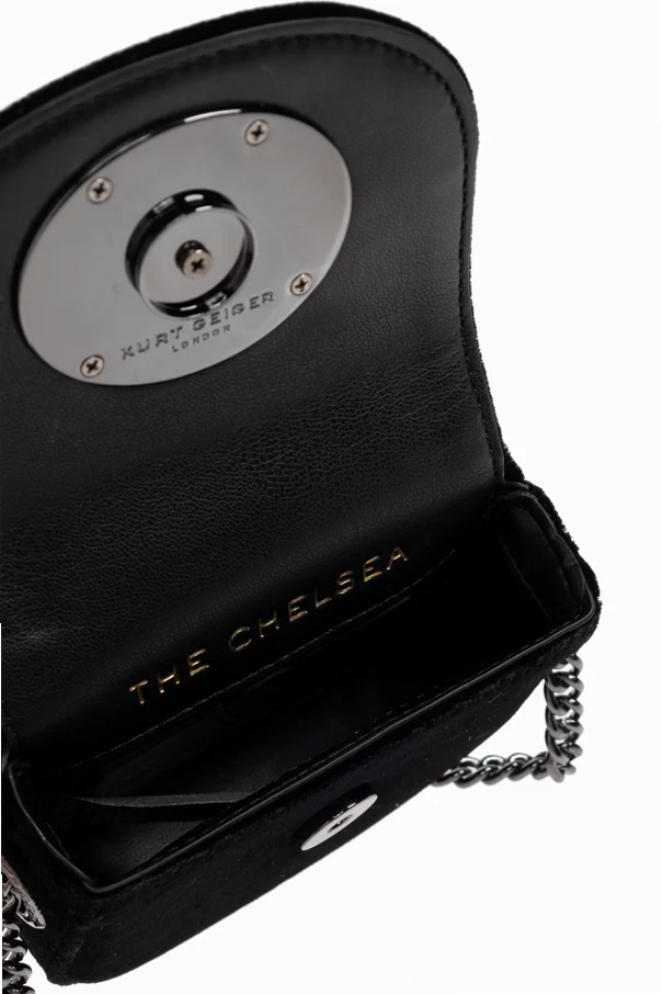 Torebka na ramię Chelsea Micro marki Kurt Geiger to wyraz kunsztu oraz luksusu ujętego w kompaktowej, zaokrąglonej formie. Jej czarna, aksamitna faktura uwodzi zmysły subtelnym połyskiem i miękkością, nadając całości ponadczasowej elegancji. Klasyczna harmonia prostoty została tu przełamana efektowną, trójwymiarową aplikacją biżuteryjną o motywie skrzydła, otoczoną dużymi, transparentnymi kryształami – detalem, który wyraźnie wyróżnia model na tle innych.
