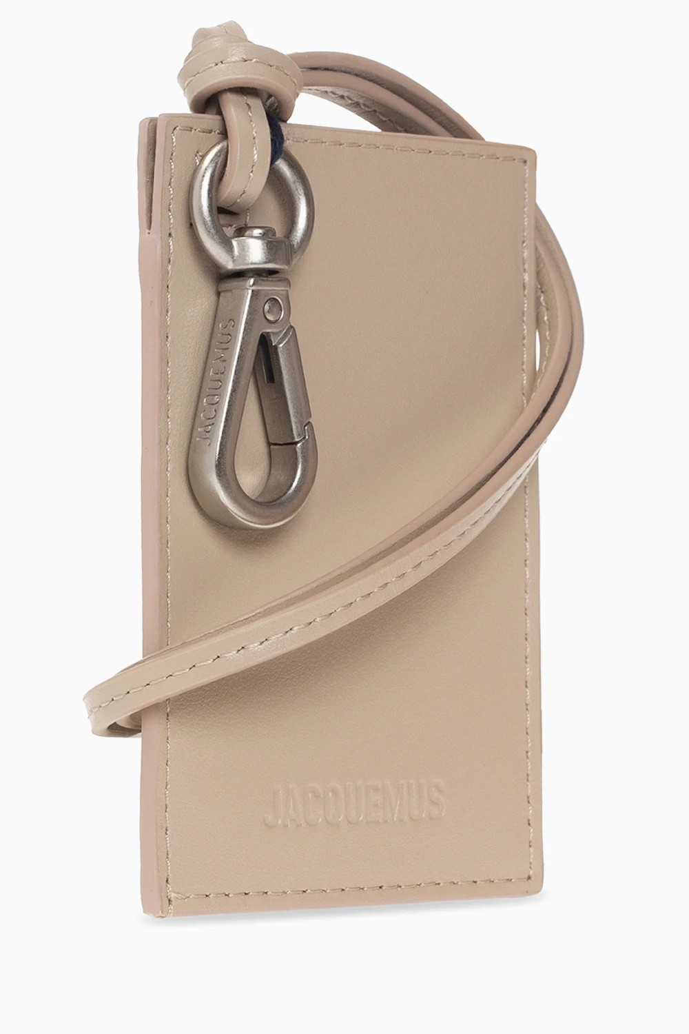 Beżowe etui Jacquemus. Wykonane ze skóry. Ozdobione wytłoczonym logo. Dołączony pasek oraz karabińczyk. Wewnątrz komora. Metalowe wykończenie w kolorze srebrnym.