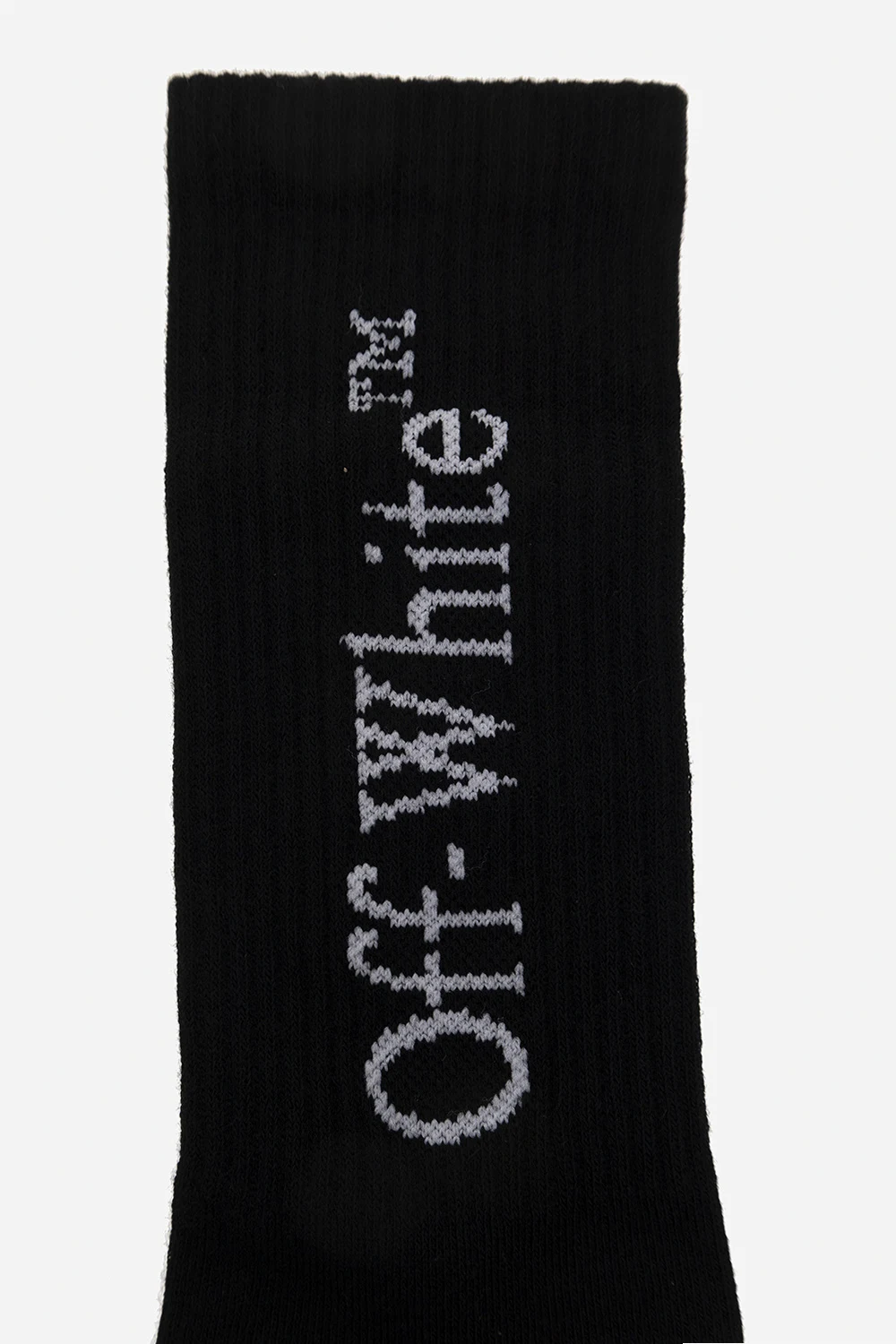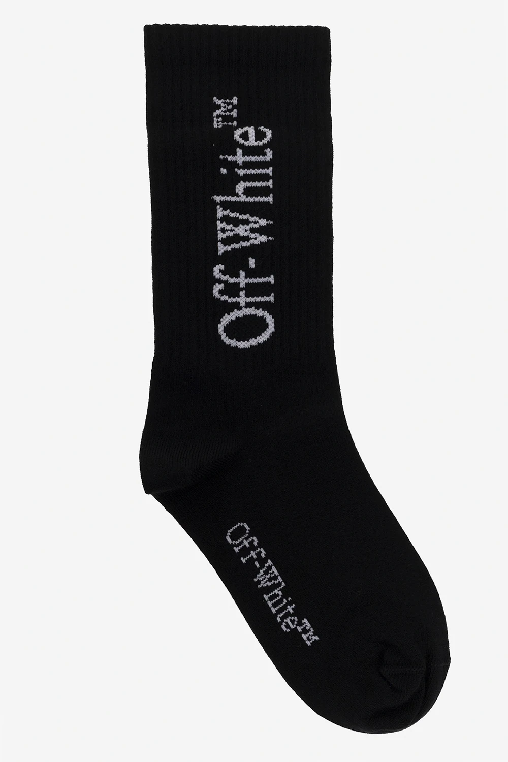 Czarne, bawełniane skarpety Off-White Kids. Ozdobione wyszytym białym logo. Zakończone ściągaczem.