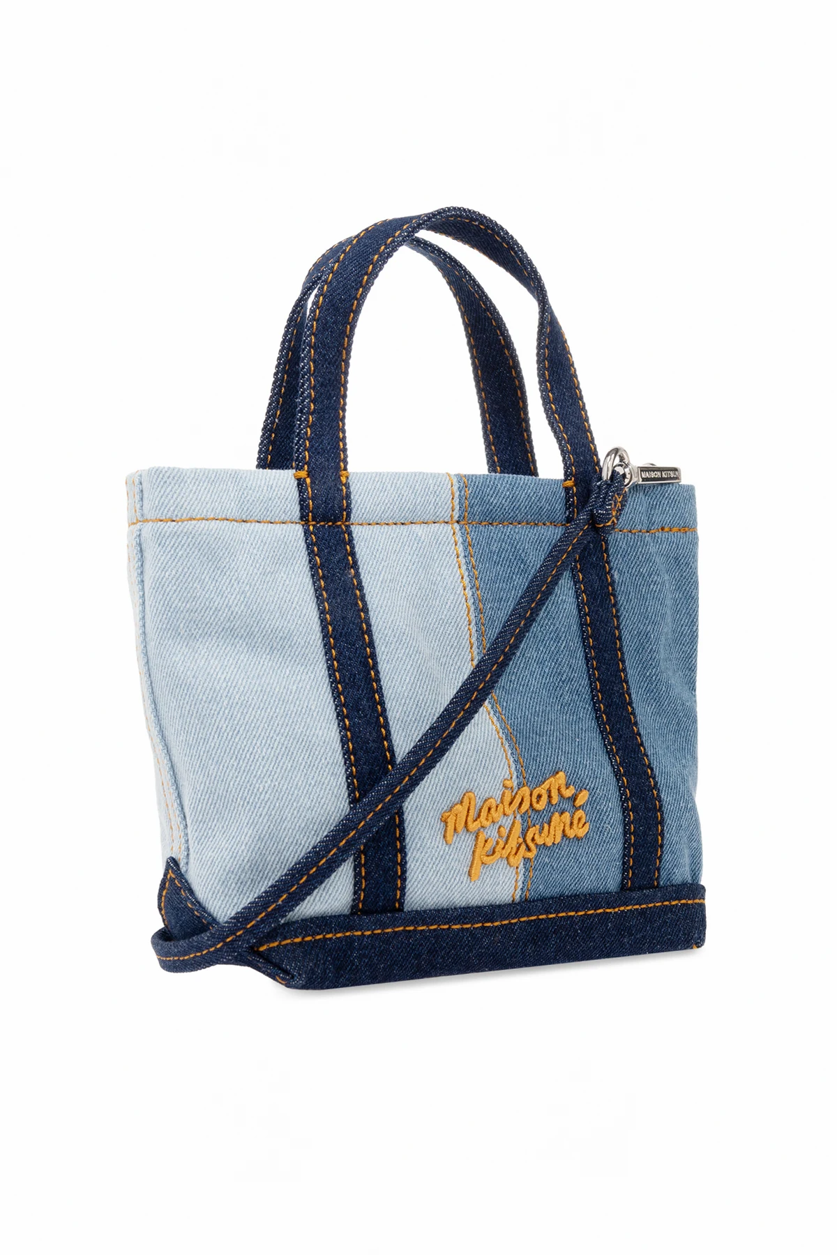 Odkryj unikalny urok torby do ręki od prestiżowego projektanta Maison Kitsuné , zaprojektowanej z myślą o miłośnikach casualowej elegancji. Ten wyjątkowy akcesorium, wykonane z wysokiej jakości materiałów, z dominacją bawełny, urzeka różnorodnością odcieni niebieskiego, które harmonijnie łączą się z jaśniejszymi tonami, przypominającymi strukturę dżinsu.