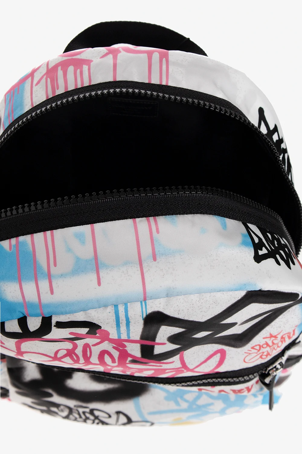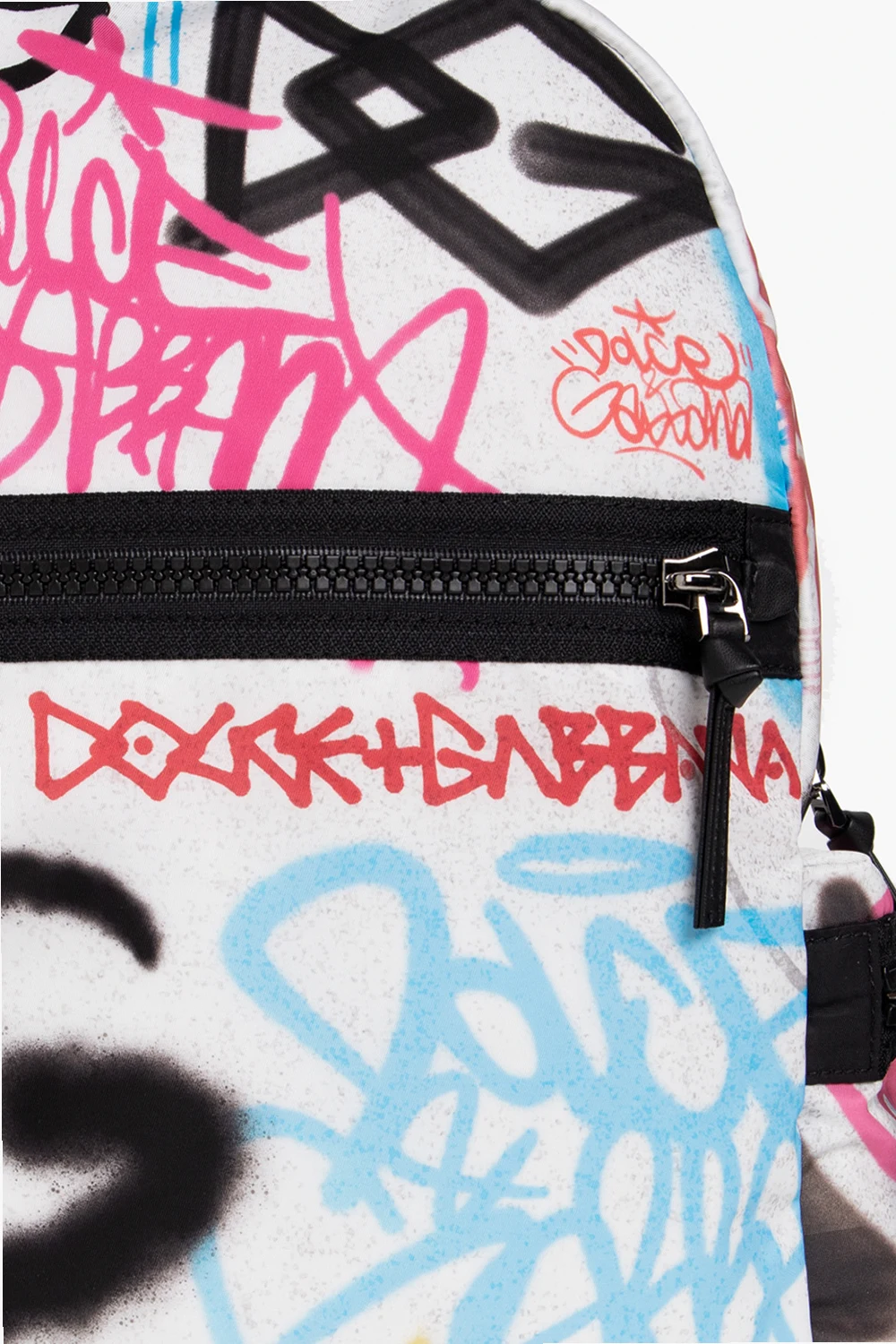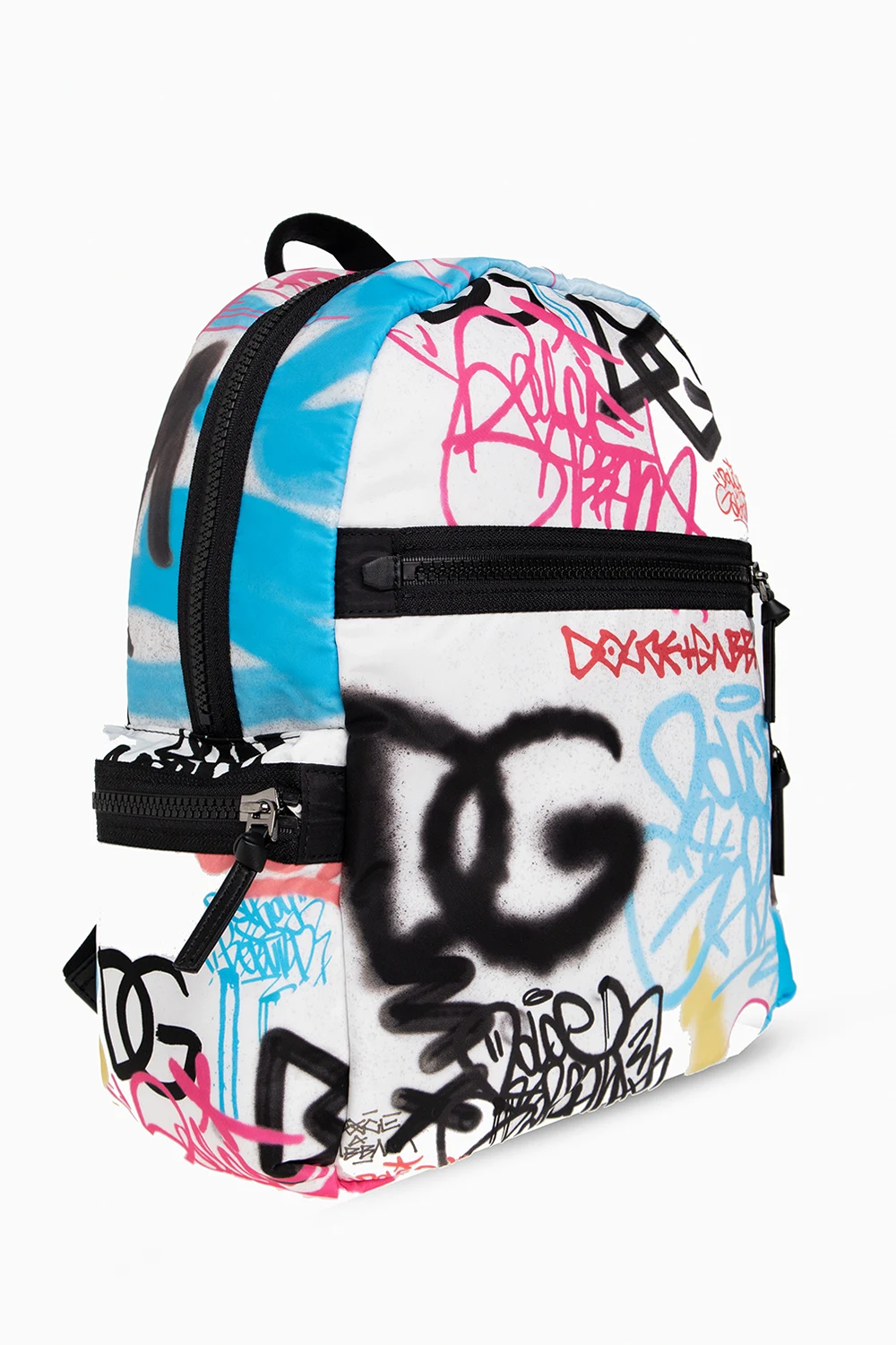Kolorowy plecak Dolce & Gabbana Kids. Zamykana na zamek. Ozdobiona wzorem z motywem graffiti. Trzy kieszenie zapinane na zamek. Półokrągła rączka. Szelki z możliwością regulacji długości. Wewnątrz komora. Metalowe wykończenie w kolorze srebrnym.