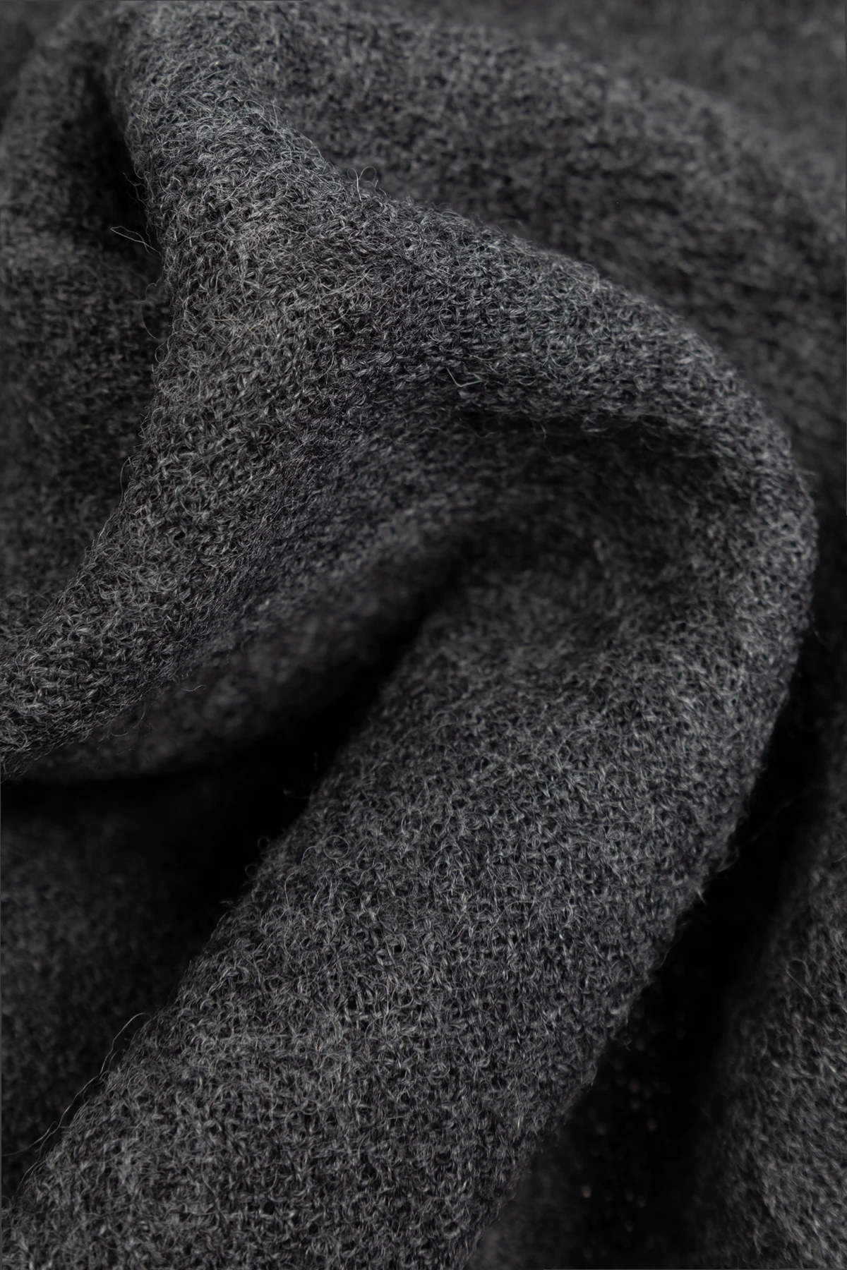 Materiał, z którego została wykonana chusta, to miękka i puszysta wełna, co gwarantuje niezrównany komfort noszenia. Na załączonych zdjęciach można zauważyć, jak pięknie prezentuje się ona zarówno samodzielnie, jak i w zestawieniu z ciemnym płaszczem.