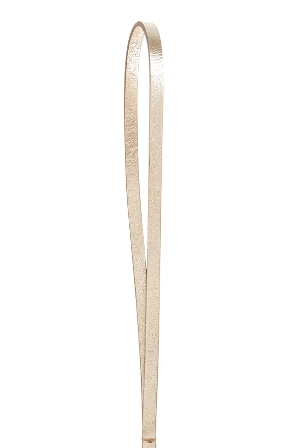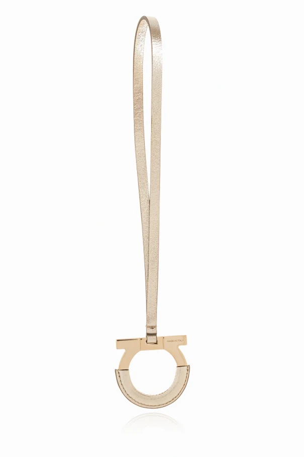 Skórzany brelok do torby w kolorze złotym to wyrafinowany akcent dla koneserek ponadczasowej elegancji. Ten niezwykle gustowny dodatek został stworzony z dbałością o każdy detal, wykorzystując wysokiej jakości skórę o szlachetnym, metalicznym wykończeniu oraz subtelne elementy z mosiądzu. Liniową, minimalistyczną formę wieńczy nowoczesny, geometryczny pierścień z charakterystyczną poprzeczką, będący rozpoznawalnym symbolem marki FERRAGAMO. Całość podkreśla dyskretne grawerowane logo projektanta, dyskretnie wpisujące się w unikatowy design.