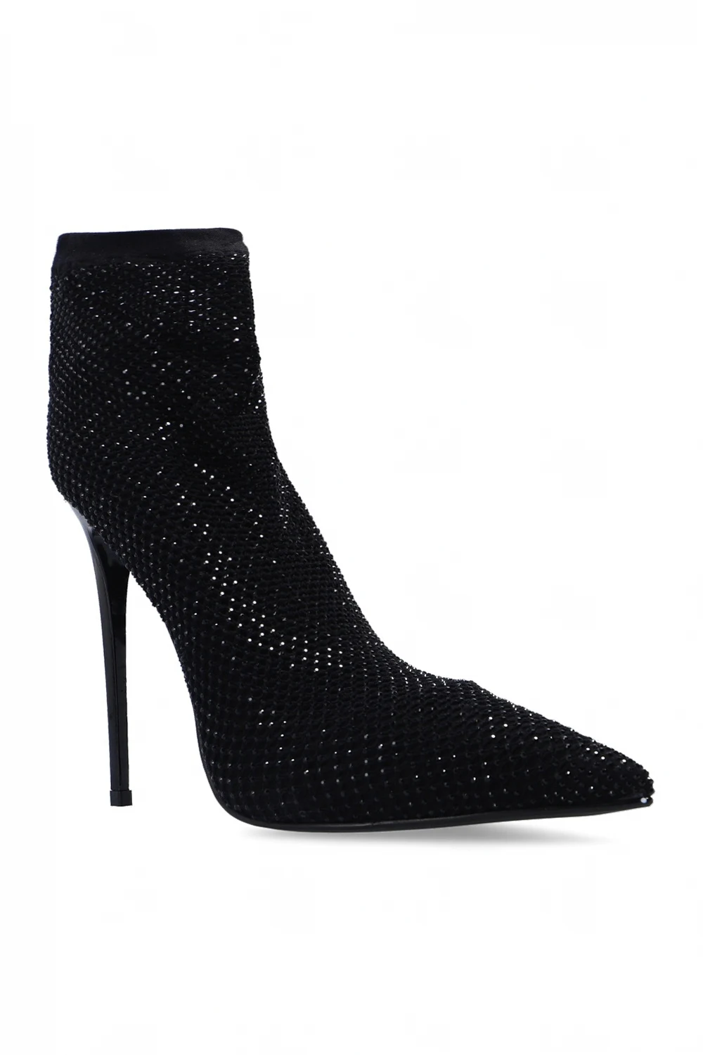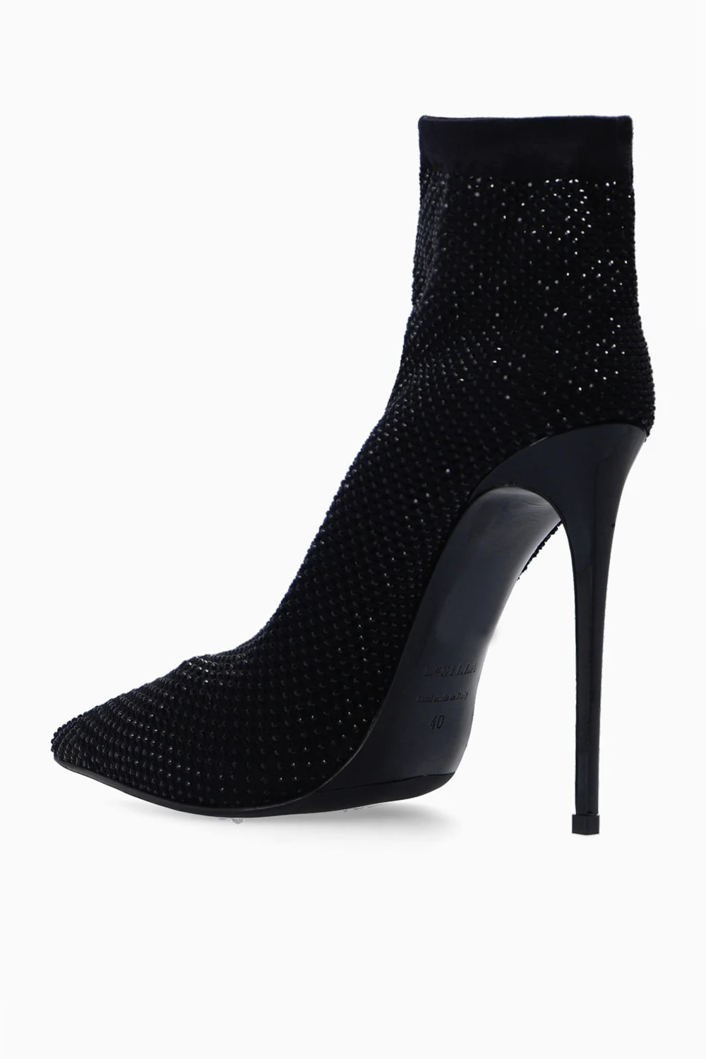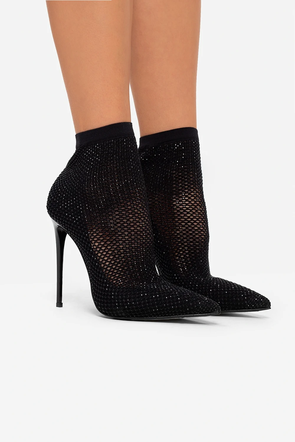 Czarne szpilki Le Silla. Wykonane z siatki. Wykończone skórą. Wysadzane dekoracyjnymi cekinami w kolorze czarnym. Czarna podeszwa, wykonana ze skóry oraz gumy.