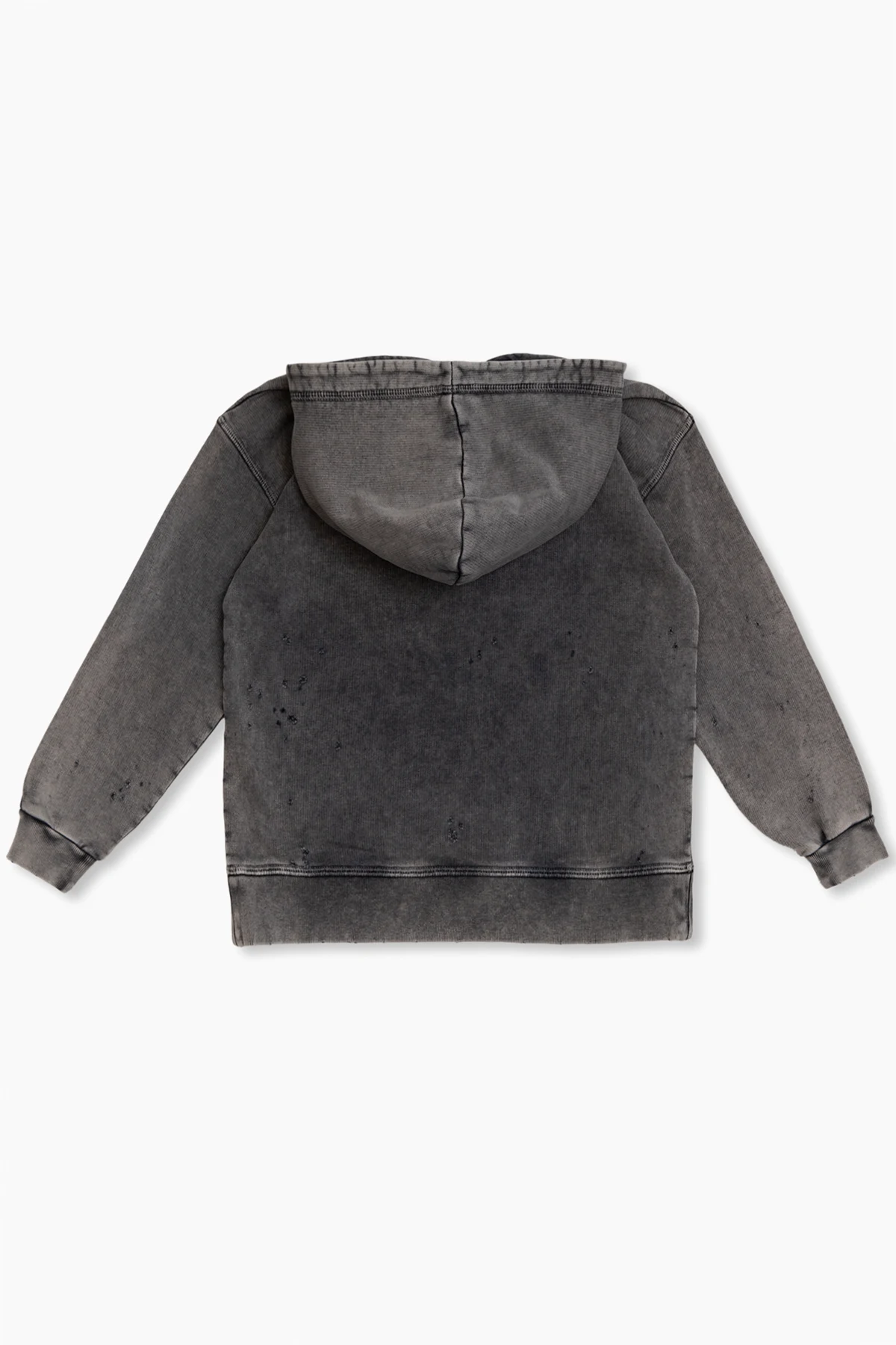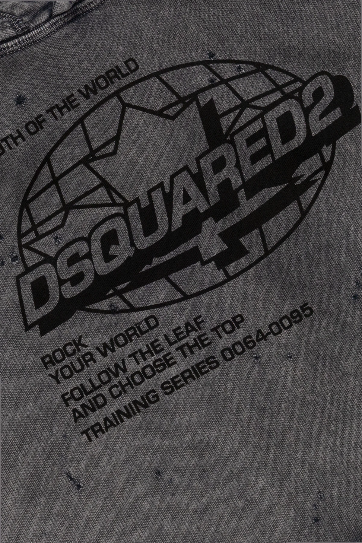 Szara bluza z kapturem Dsquared2 Kids. Wykonana z bawełny. Ozdobiona nadrukowanym logo w kolorze czarnym. Długie rękawy i dół wykończone ściągaczem. Efekt 'vintage'.